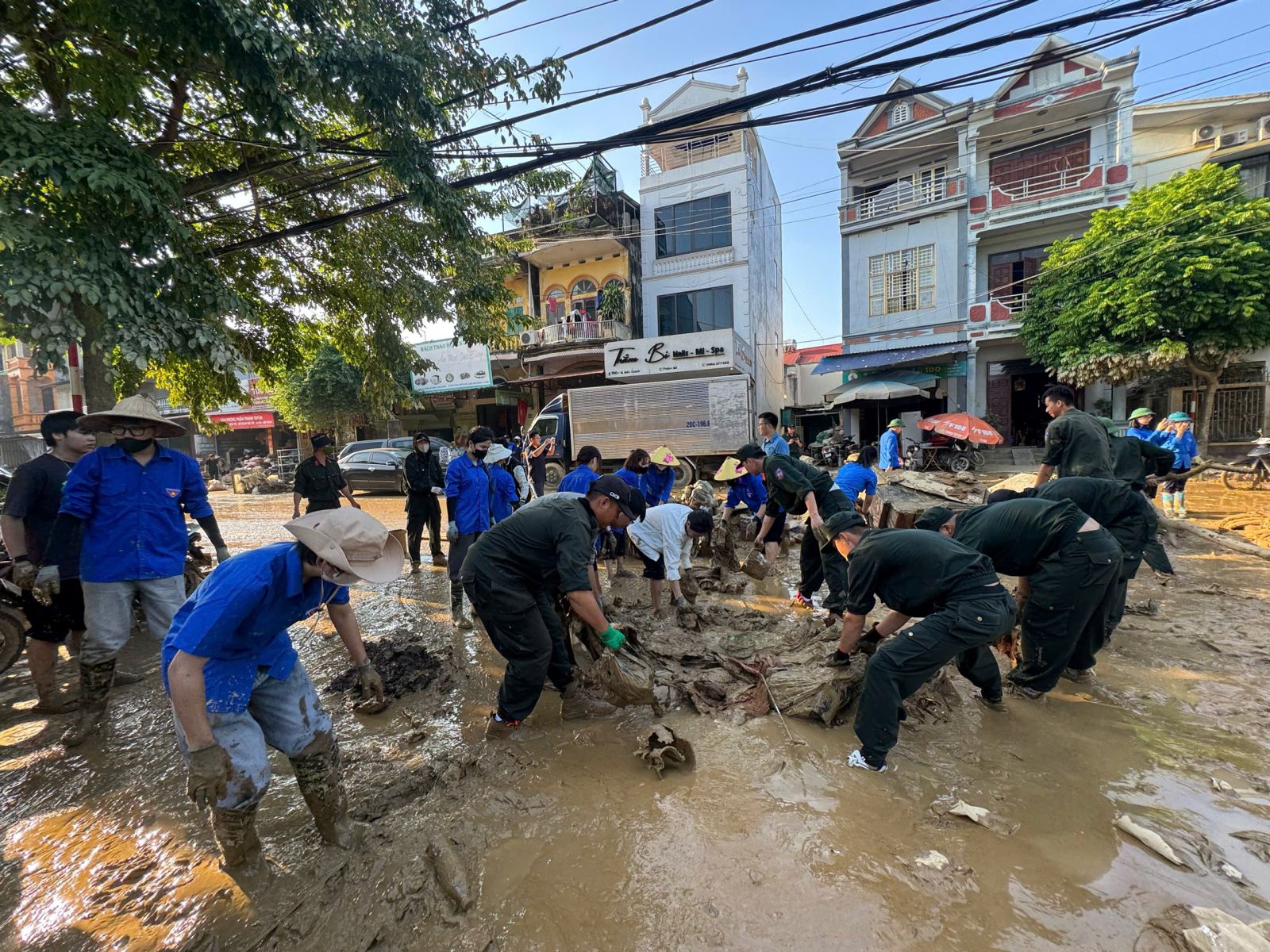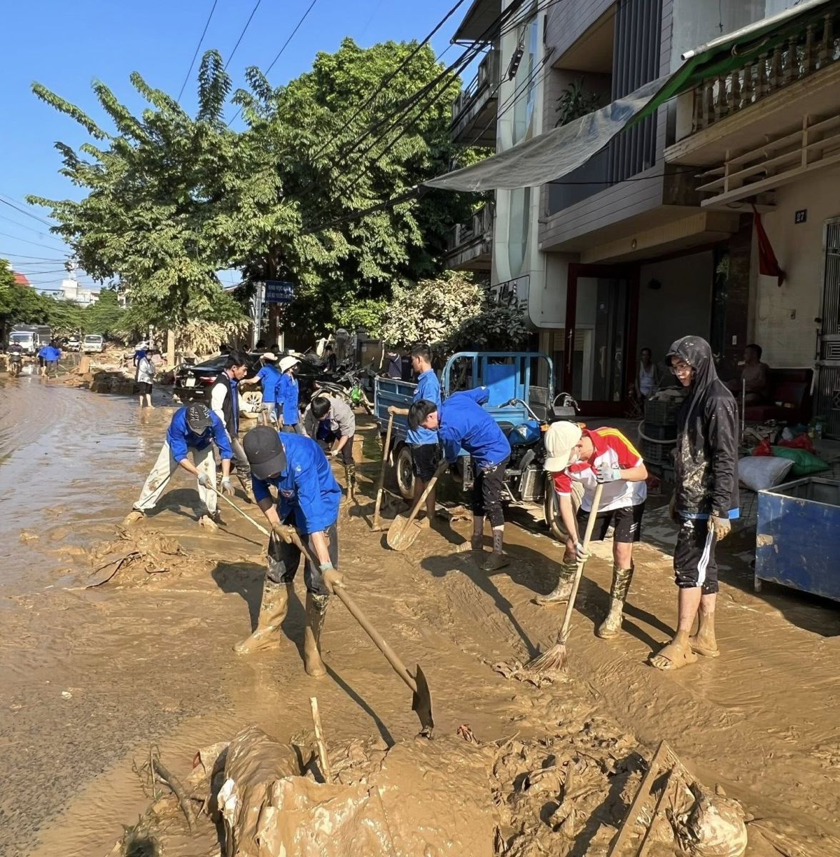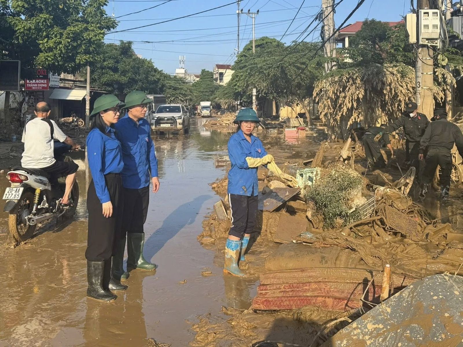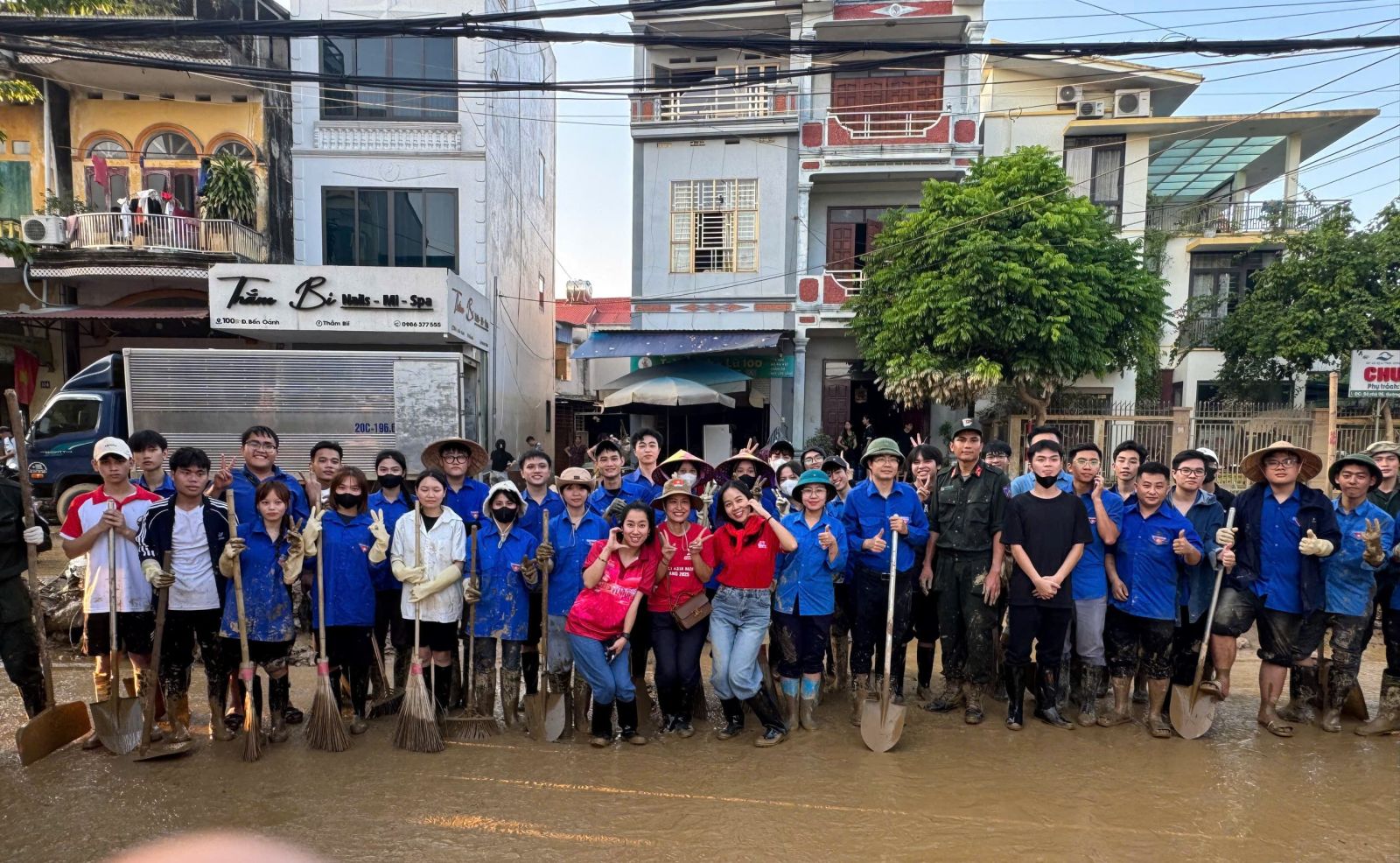 Với tinh thần xung kích, trách nhiệm vì cộng đồng, các đoàn viên, thanh niên đã tích cực thu gom bùn đất, khơi thông dòng chảy, làm sạch môi trường, góp phần sớm ổn định đời sống cho người dân.