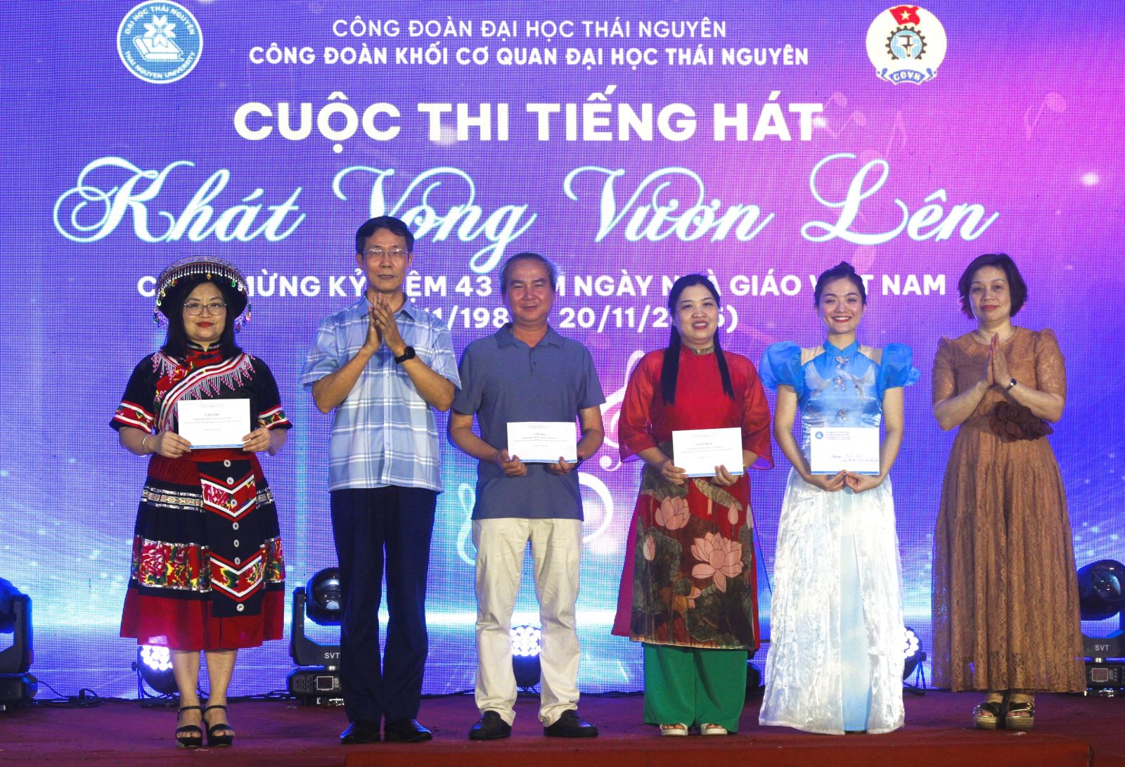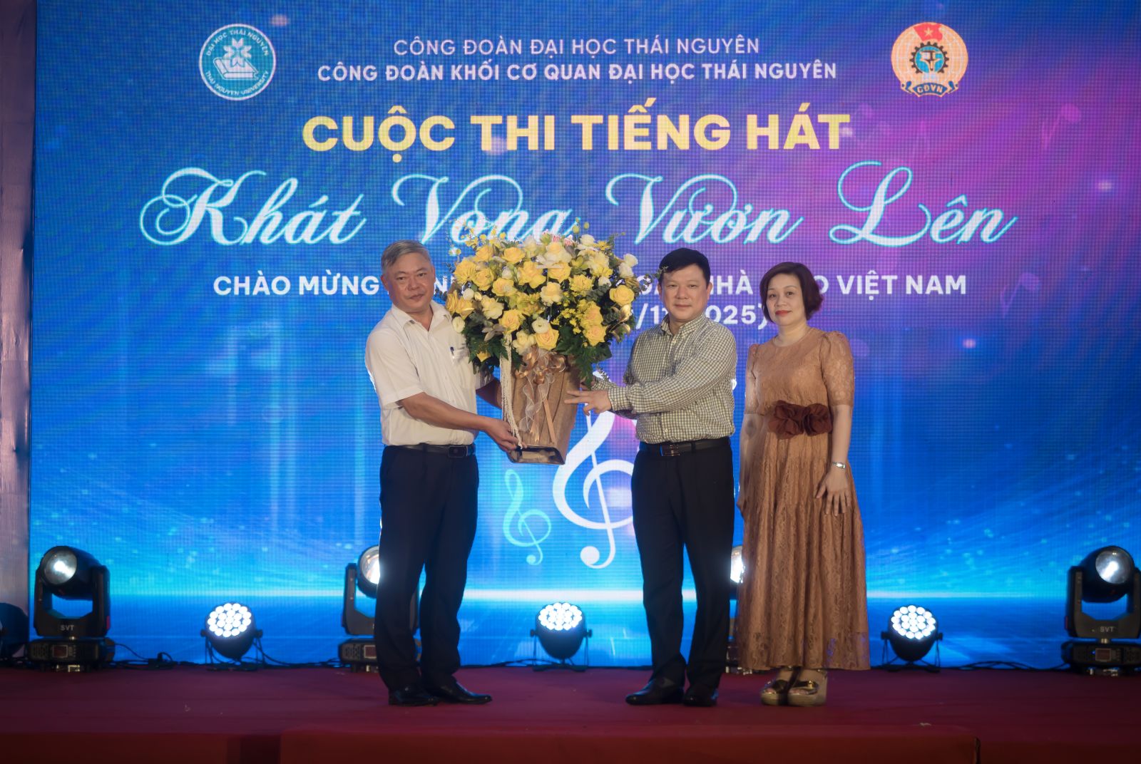 Đại diện Công đoàn Khối Cơ quan Đại học Thái Nguyên tặng hoa chúc mừng lãnh đạo Đại học Thái Nguyên.