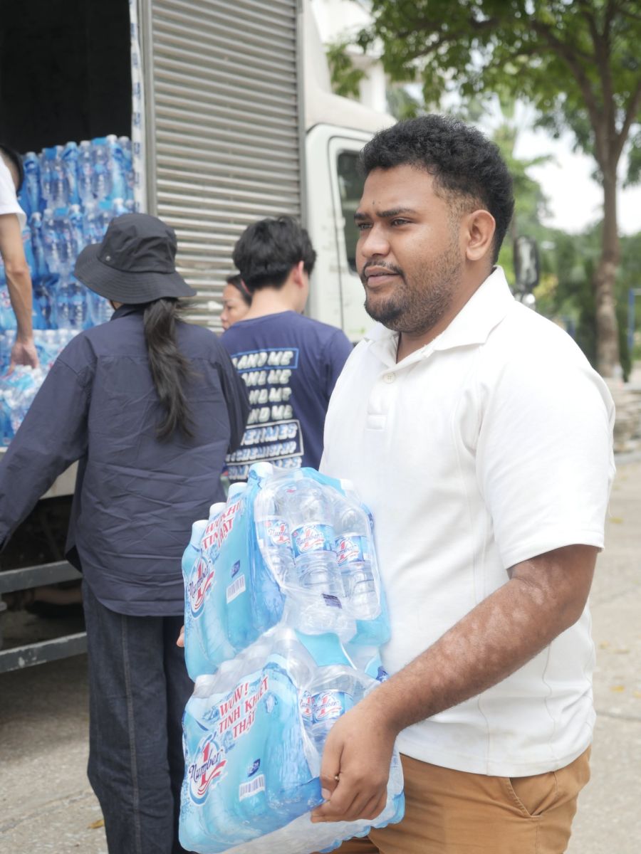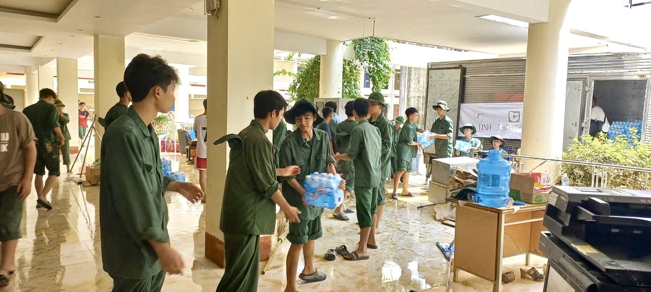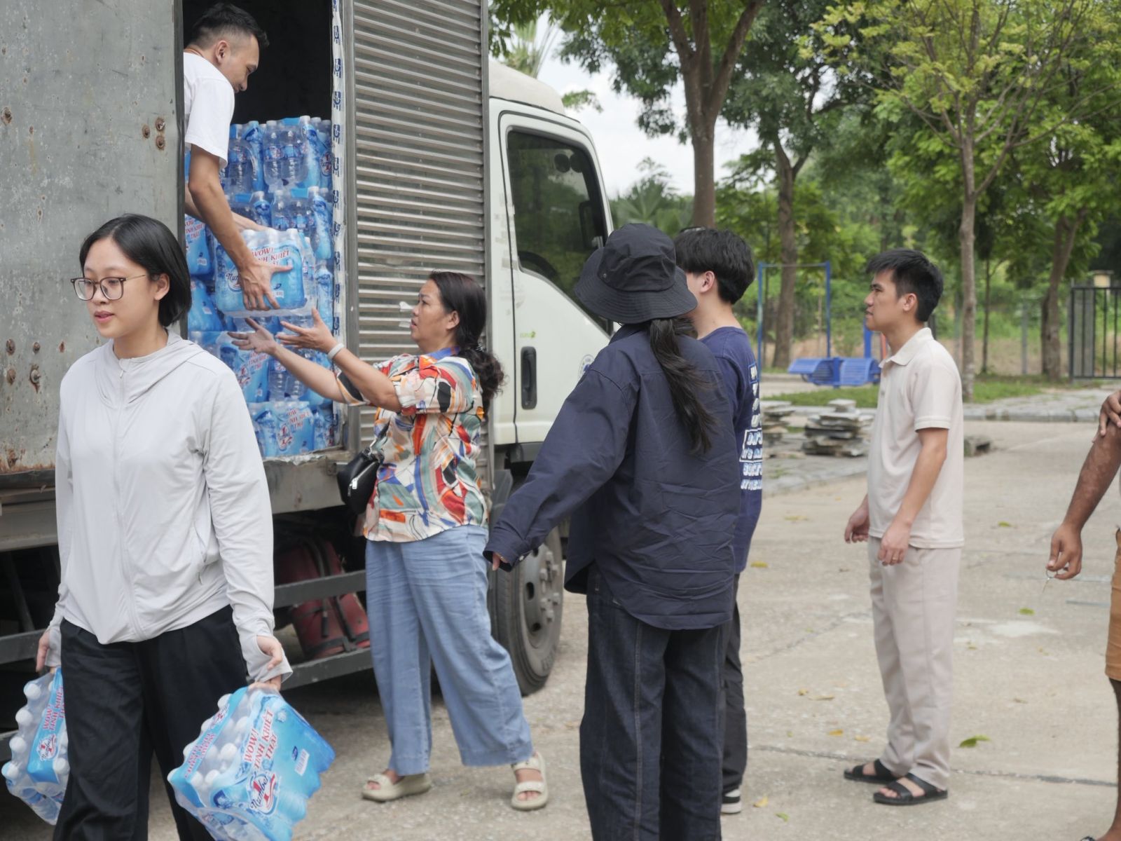 Đoàn công tác đã trao quà gồm nước uống, các nhu yếu phẩm trị giá trên 60 triệu đồng cho cán bộ, giảng viên và sinh viên Đại học Thái Nguyên bị thiệt hại do mưa lũ vừa qua.
