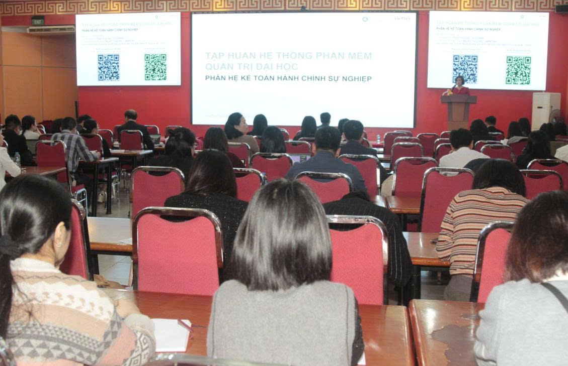 On the morning of December 8, Thai Nguyen University organized a training workshop on the University Governance Software System, focusing on the Public Administrative Accounting module. Dr. Nguyen Hong Lien, Vice President of Thai Nguyen University; leaders and officers of the Department of Planning–Finance; representatives of the leadership and finance–planning officers from member universities, colleges, and affiliated units attended the workshop.