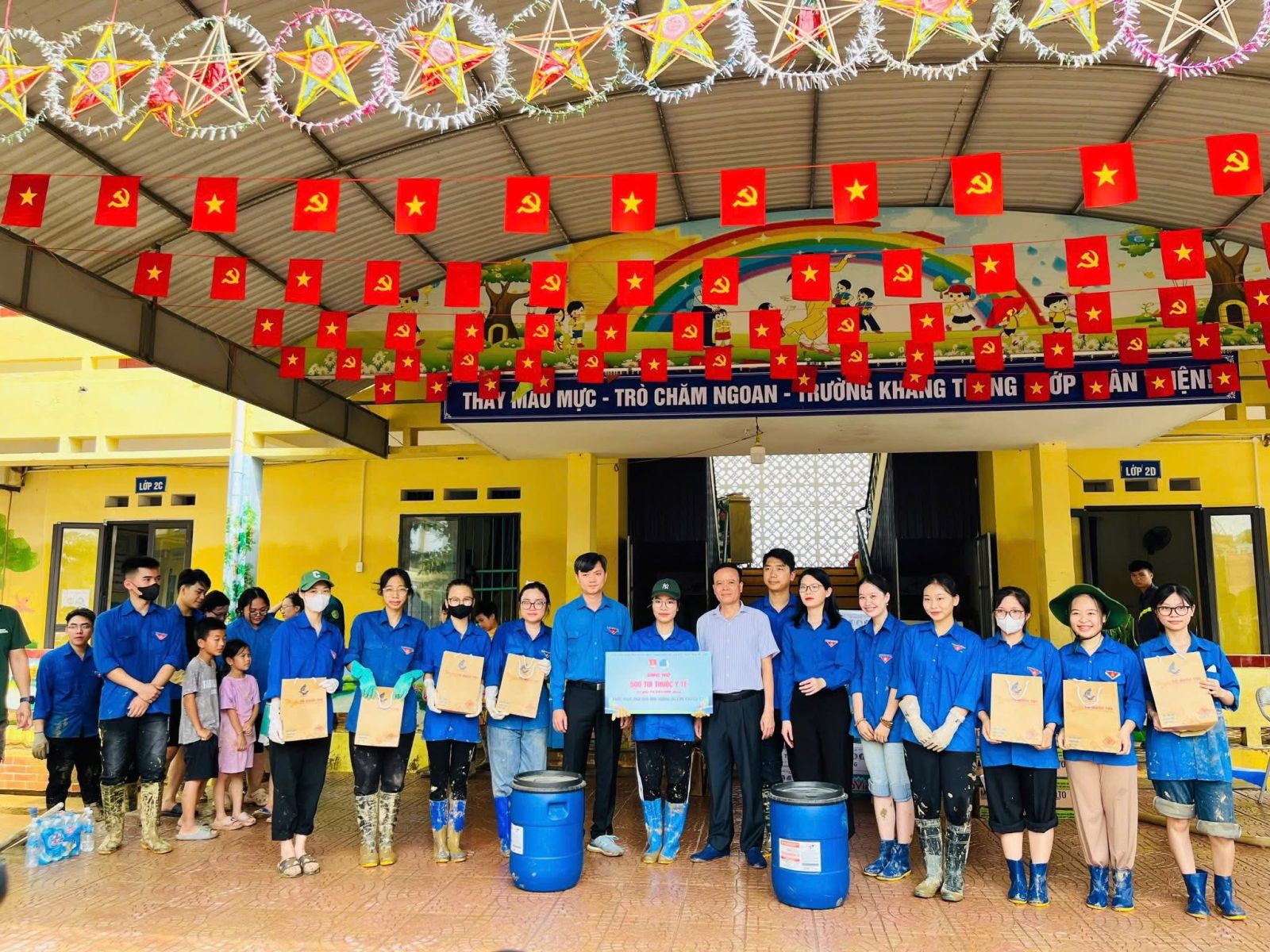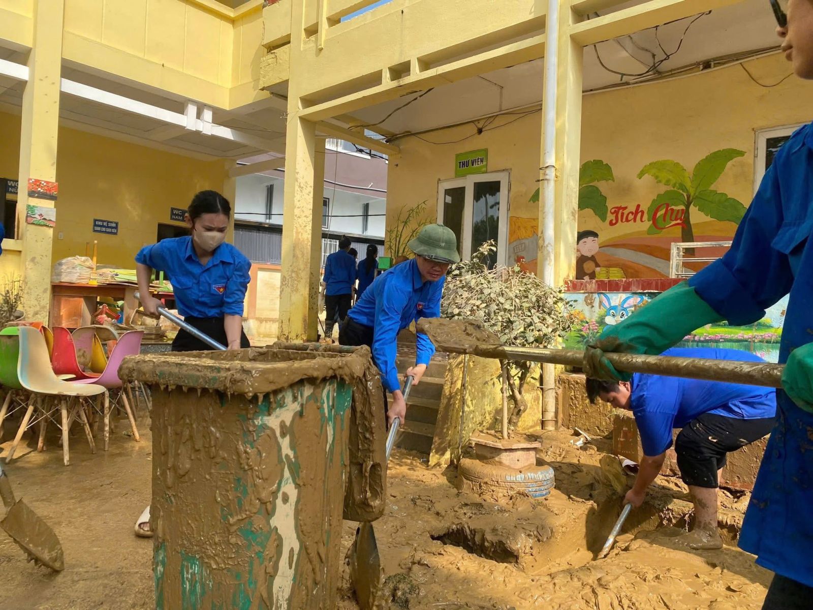 Đặc biệt, Đội sinh viên tình nguyện Trường Đại học Y – Dược (TUMP), cùng lực lượng của Trường Đại học Kỹ thuật Công nghiệp và Đoàn phường Quan Triều, đã trực tiếp hỗ trợ tại Trường Tiểu học Quang Vinh - nơi chịu thiệt hại nghiêm trọng sau thiên tai. Những đôi tay lấm bùn nhưng ánh mắt luôn sáng lên tinh thần sẻ chia, quyết tâm khắc phục hậu quả.