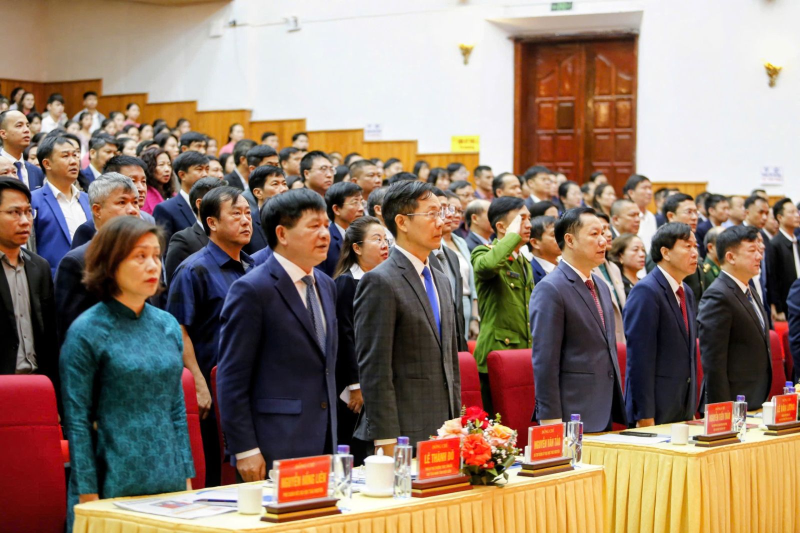 Các đại biểu thực hiện nghi lễ chào cờ.