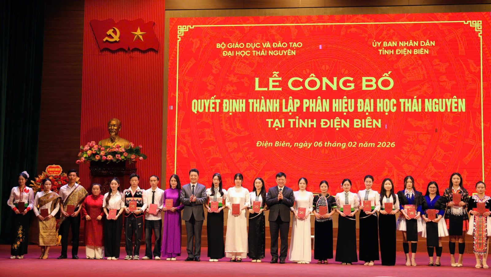 Tại buổi lễ, thừa uỷ quyền của Bộ trưởng Bộ Giáo dục và Đào tạo, GS.TS Nguyễn Tiến Thảo, Vụ trưởng Vụ Giáo dục đại học, Bộ Giáo dục và Đào tạo đã trao Quyết định số 3333/QĐ-BGDĐT ngày 01/12/2025 của Bộ trưởng Bộ Giáo dục và Đào tạo về việc thành lập Phân hiệu ĐHTN tại tỉnh Điện Biên trên cơ sở Trường Cao đẳng Sư phạm Điện Biên và Trường Cao đẳng Y tế Điện Biên.