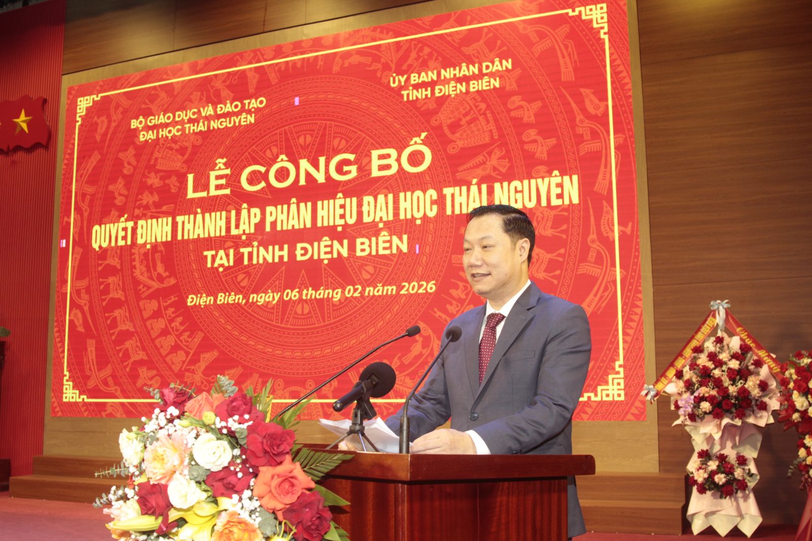 Phát biểu giao nhiệm vụ tại buổi Lễ, GS.TS Nguyễn Tiến Thảo, Vụ trưởng Vụ Giáo dục đại học, Bộ Giáo dục và Đào tạo nhấn mạnh: Ngày 06/02/2026 sẽ đi vào lịch sử phát triển của Phân hiệu ĐHTN tại tỉnh Điện Biên như một dấu mốc đậm nét trong lịch trình phát triển, lịch trình đổi mới và thể hiện vai trò của ĐHTN trong phát triển giáo dục đại học với người dân, người học của tỉnh Điện Biên và khu vực Tây Bắc.