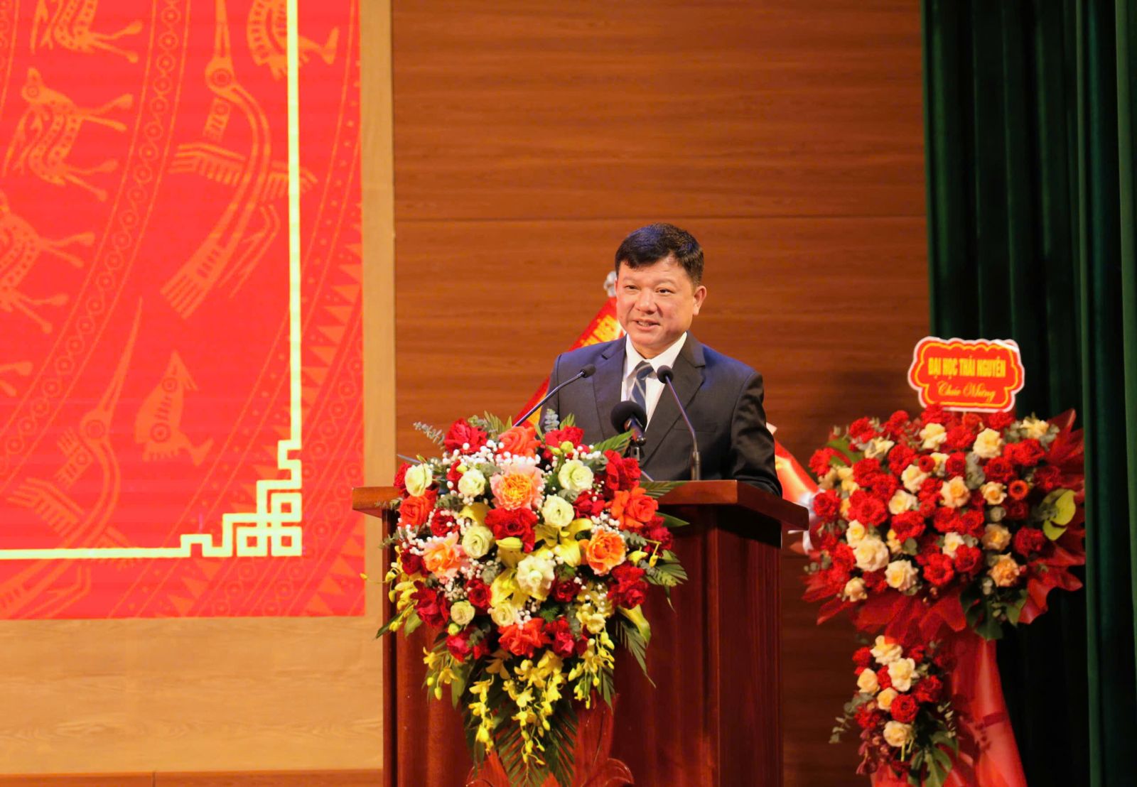 GS.TS Nguyễn Tiến Thảo, Vụ trưởng Vụ Giáo dục đại học, Bộ Giáo dục và Đào tạo tặng hoa chúc mừng Phân hiệu ĐHTN tại tỉnh Điện Biên.