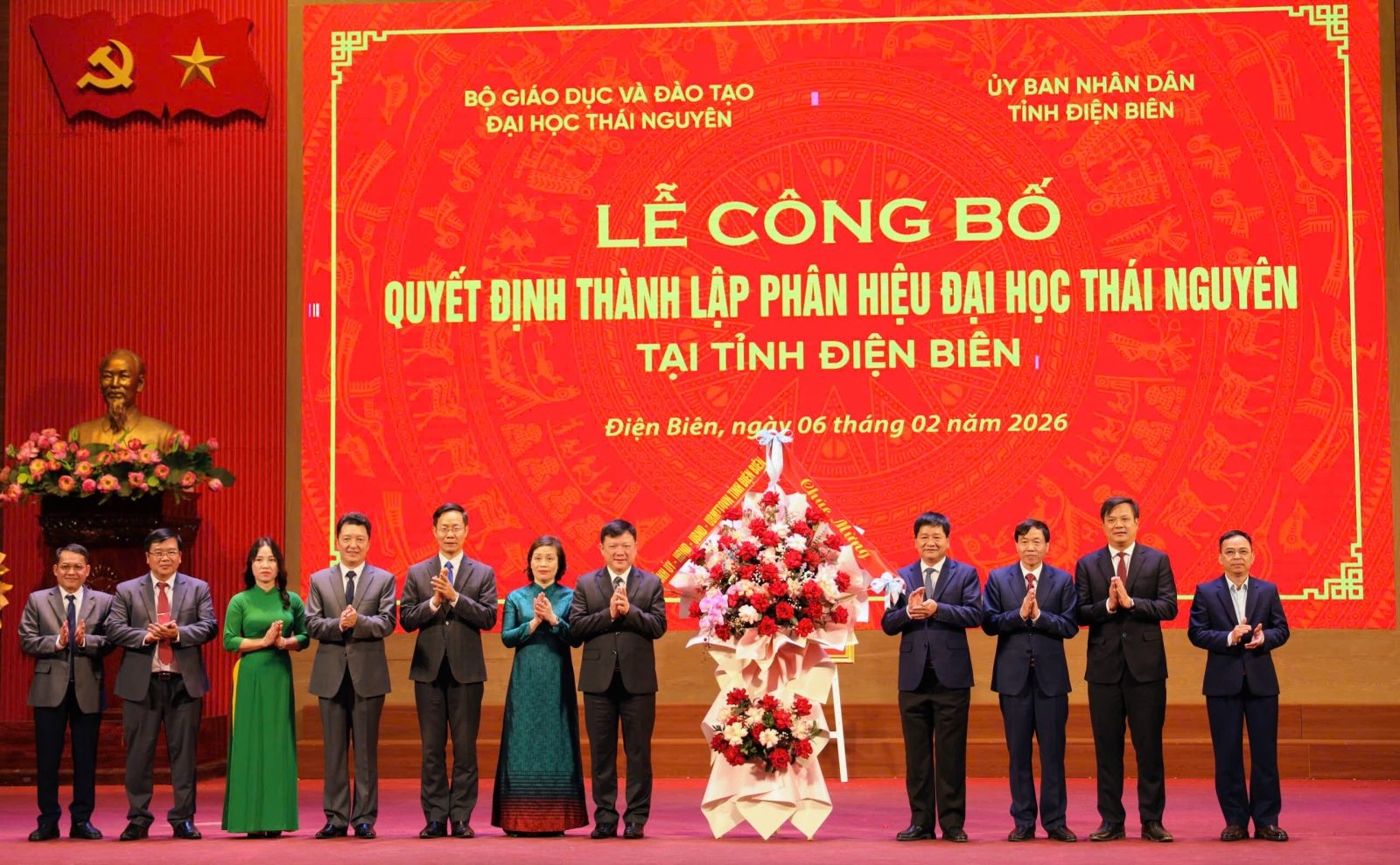 Các đồng chí lãnh đạo tỉnh Điện Biên tặng hoa chúc mừng Phân hiệu ĐHTN tại tỉnh Điện Biên.