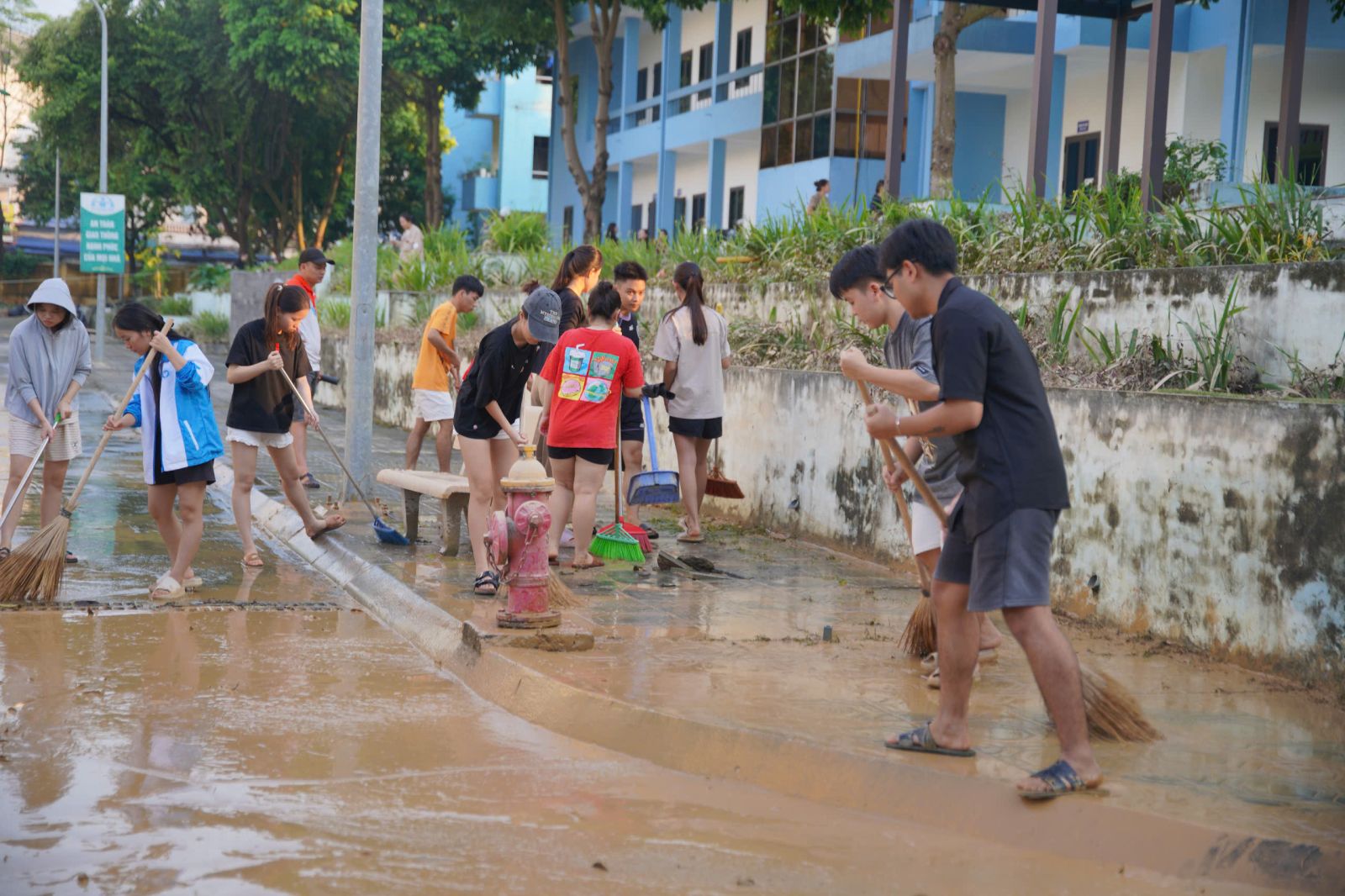Sinh viên Trường Đại học Sư phạm tham gia dọn dẹp, khắc phục hậu quả sau bão số 11