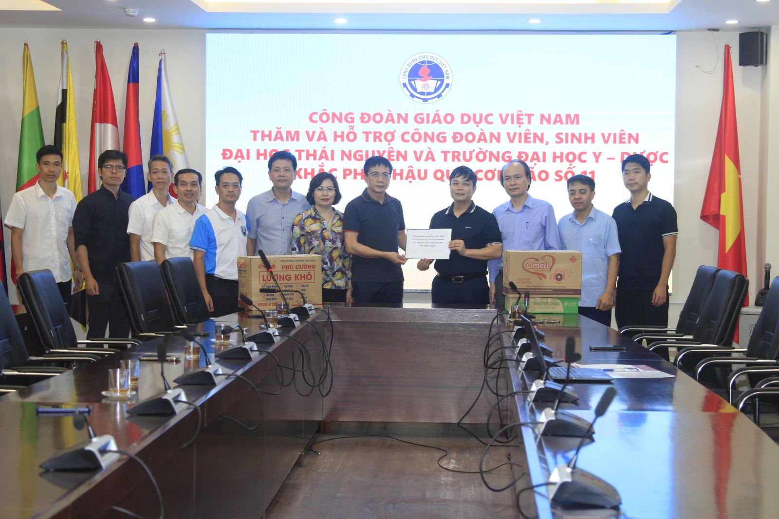 Đoàn công tác của Công đoàn Giáo dục Việt Nam trao quà hỗ trợ cán bộ, giảng viên, sinh viên Đại học Thái Nguyên bị ảnh hưởng do mưa lũ, với tổng giá trị 100 triệu đồng.
