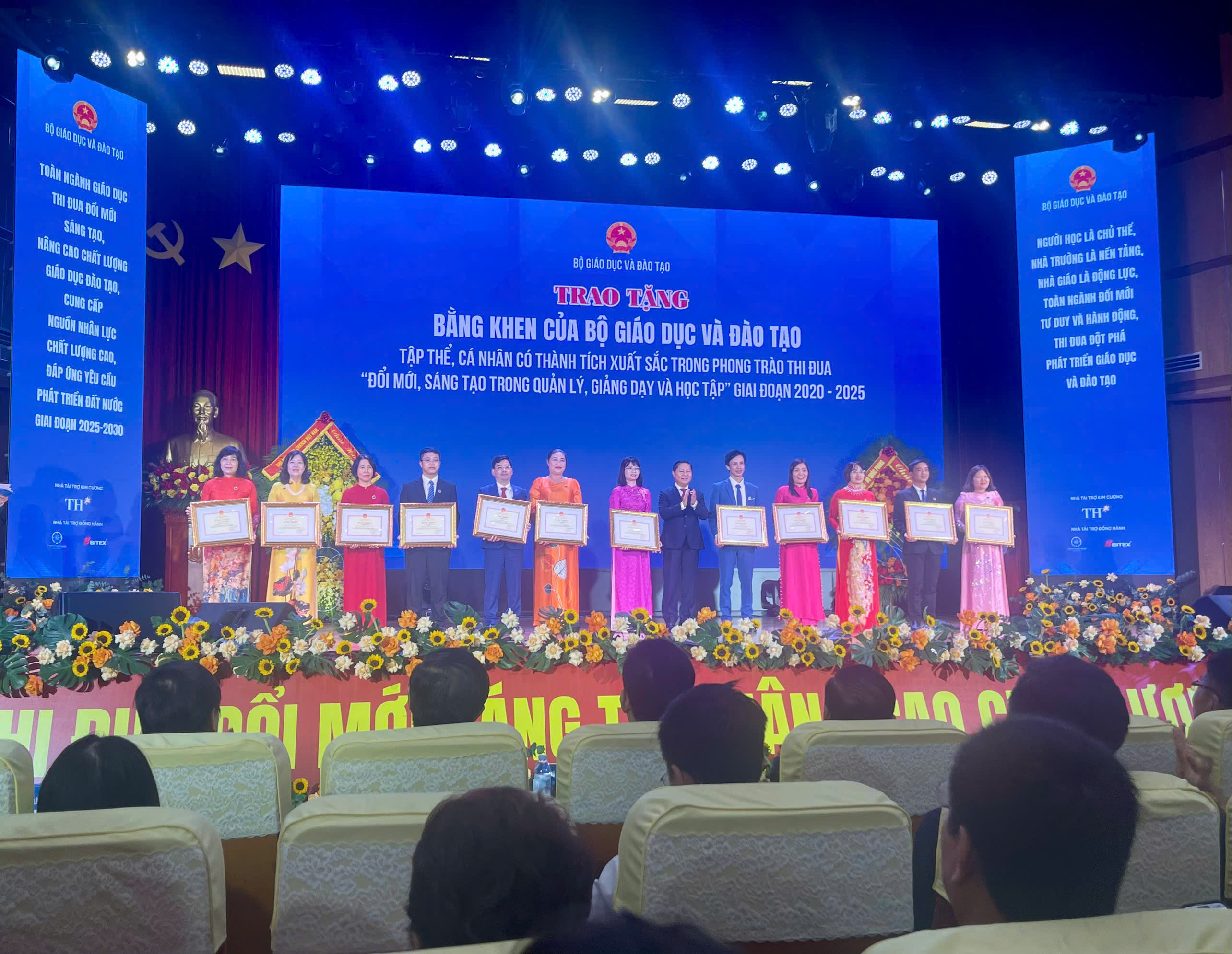 Đại diện lãnh đạo Bộ Giáo dục và Đào tạo tặng Bằng khen cho các tập thể, cá nhân có thành tích xuất sắc trong phong trào thi đua “Đổi mới, sáng tạo trong quản lý, giảng dạy và học tập” giai đoạn 2020-2025.