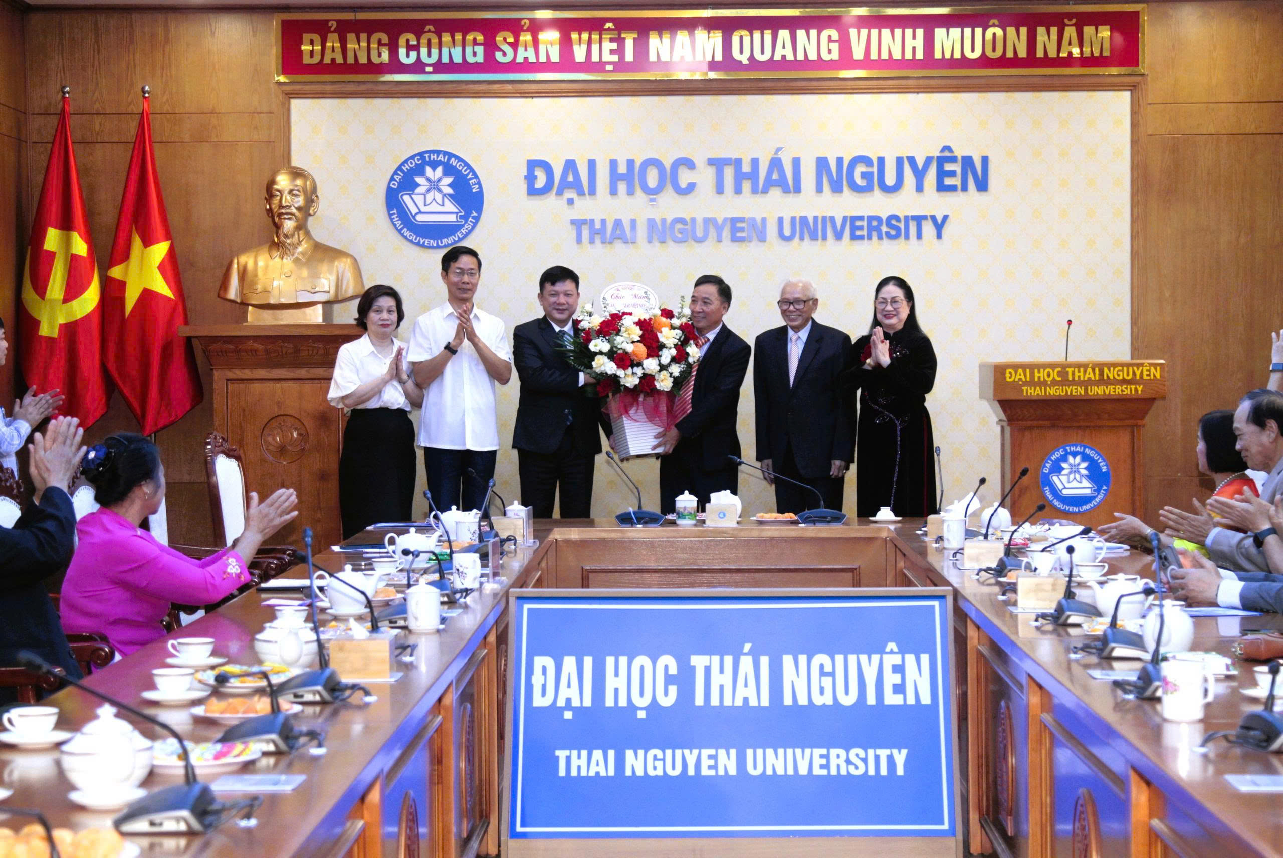 Lãnh đạo Đại học Thái Nguyên tặng hoa chúc mừng Hội Cựu giáo chức Khối cơ quan.