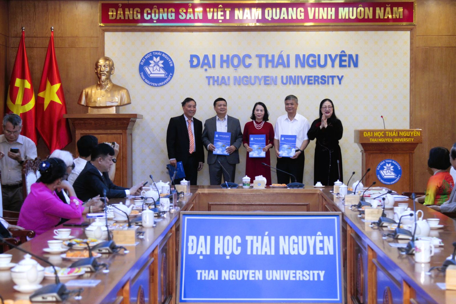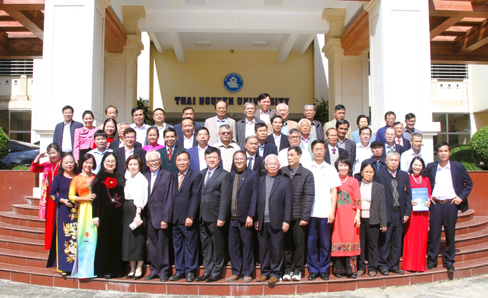 Hội Cựu giáo chức Khối cơ quan Đại học Thái Nguyên chụp ảnh lưu niệm cùng lãnh đạo Đại học Thái Nguyên.