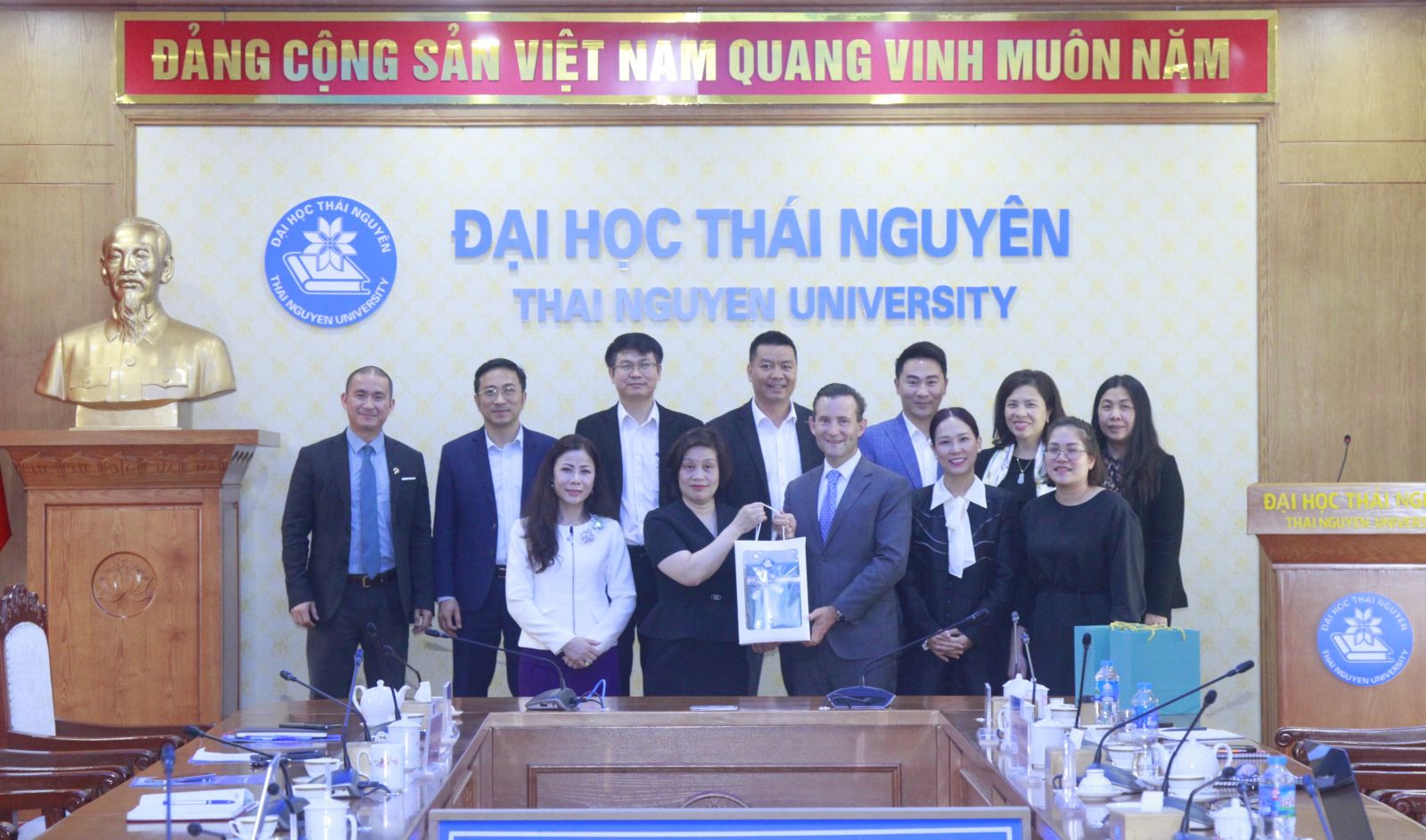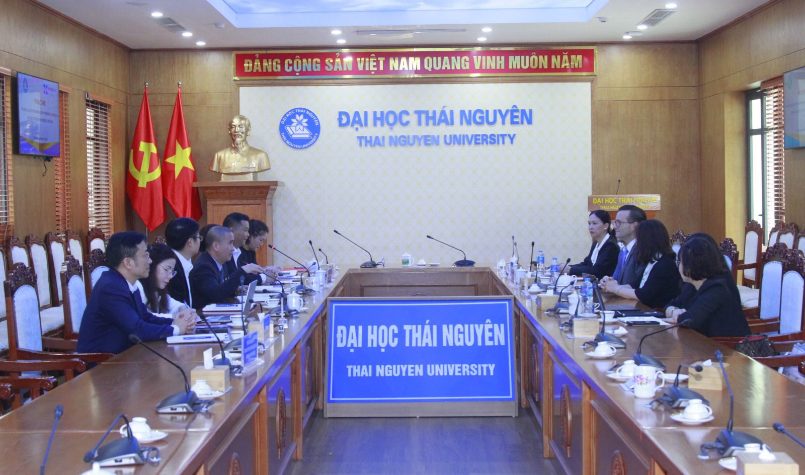 Tiếp và làm việc với Đoàn có TS. Nguyễn Hồng Liên, Phó Giám đốc ĐHTN; đại diện lãnh đạo các Ban chức năng, Trung tâm Đào tạo, Bồi dưỡng và Phát triển quốc tế, Viện Đào tạo và Nghiên cứu xuất sắc, Khoa Quốc tế.