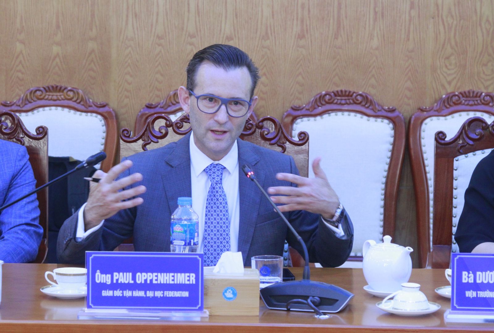 Ông Paul Oppenheimer, Giám đốc Vận hành, Đại học Federation phát biểu tại buổi làm việc.