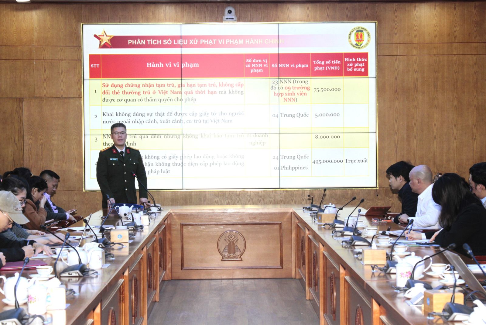 Đồng chí cũng lưu ý một số vi phạm thường gặp như sử dụng thị thực không đúng mục đích, quá hạn tạm trú hoặc thiếu phối hợp trong quản lý giữa các bộ phận chức năng, có thể dẫn đến sai lệch dữ liệu và phát sinh rủi ro pháp lý. Đối với hoạt động đưa cán bộ, giảng viên và người học ra nước ngoài học tập, công tác, đồng chí đề nghị các đơn vị thực hiện nghiêm quy trình quản lý, bảo đảm tuân thủ quy định về xuất nhập cảnh và bảo vệ bí mật Nhà nước.