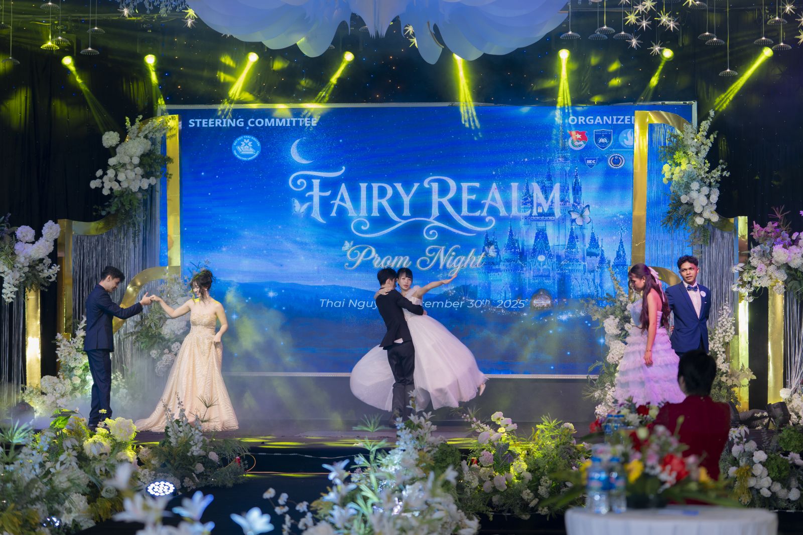Kết thúc Cuộc thi King & Queen of Prom Night, Ban Giám khảo đã trao danh hiệu King & Queen cho hai thí sinh xuất sắc Nguyễn Bảo Vũ Khoa và Nguyễn Anh Thư. Tiết mục chiến thắng của học sinh Trường THPT Ngô Quyền mang chủ đề “Cinderella & Prince Charming: Khúc biến tấu của sự kiên định” đã để lại dấu ấn sâu đậm trong lòng người xem. Với nhịp điệu uyển chuyển, phần âm nhạc được biến tấu tinh tế hòa quyện cùng những bước nhảy mềm mại, giàu kỹ thuật, màn trình diễn trở nên cuốn hút ngay từ những giây phút đầu tiên. Trang phục dạ hội lộng lẫy kết hợp cùng biểu cảm tự tin, giàu cảm xúc của hai thí sinh đã khắc họa rõ nét thông điệp về sự kiên định và lòng dũng cảm trên hành trình theo đuổi ước mơ. Cao trào của tiết mục đã thực sự chinh phục khán giả, khiến sân khấu bừng sáng dưới ánh đèn rực rỡ, hòa cùng những tràng pháo tay vang dội và sự cổ vũ nồng nhiệt khắp hội trường, tạo nên một khoảnh khắc thăng hoa và đáng nhớ của đêm Prom.