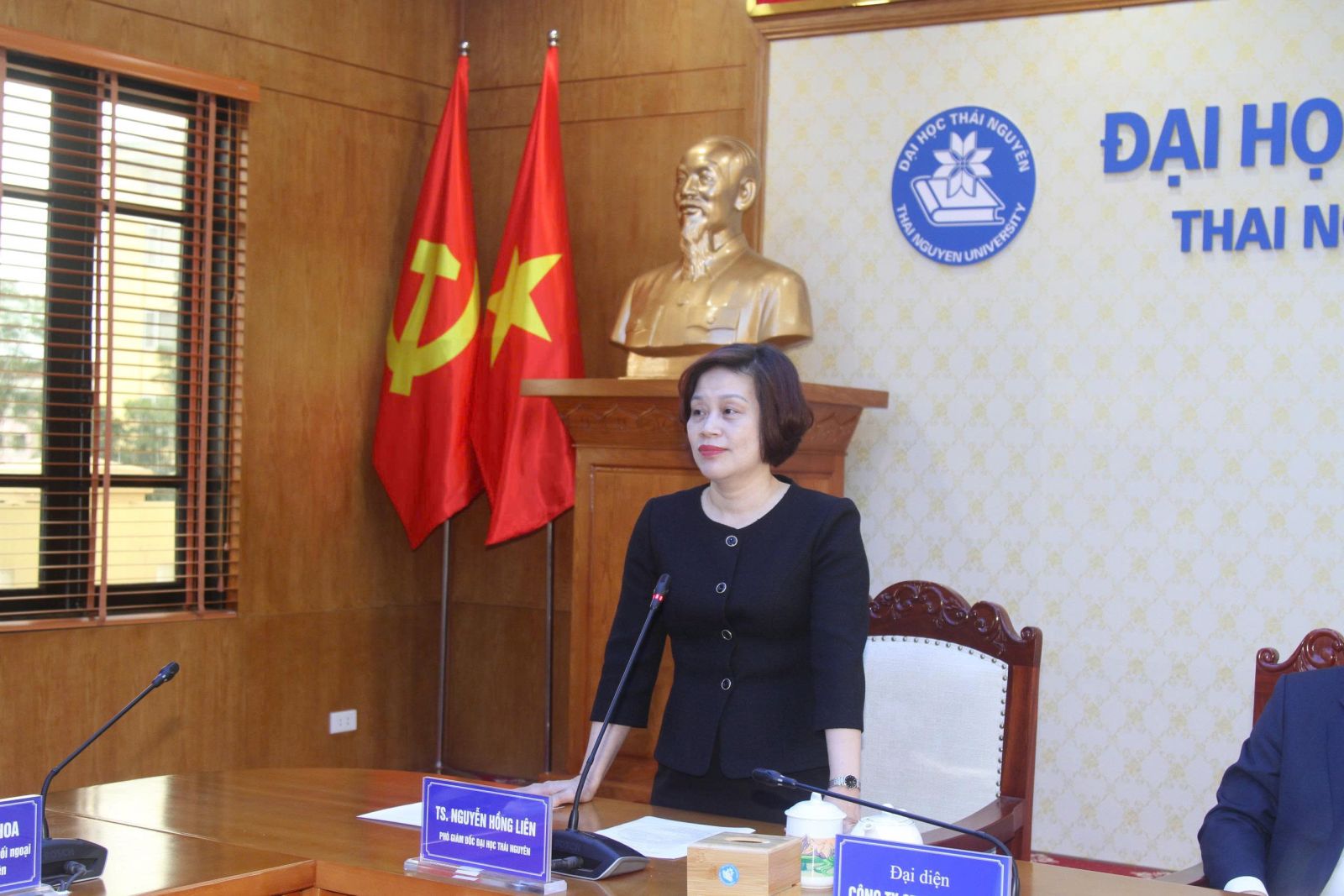 TS. Nguyễn Hồng Liên, Phó Giám đốc Đại học Thái Nguyên phát biểu tại buổi làm việc.