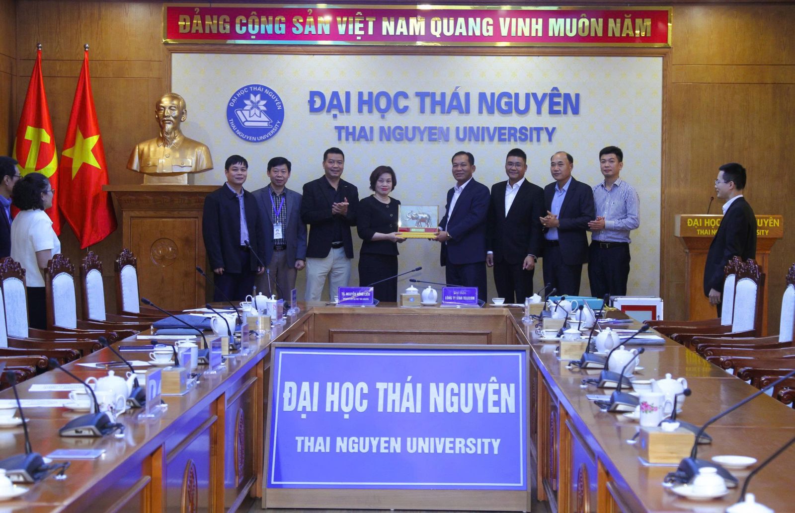 Đoàn công tác của Công ty Star Telecom tặng quà lưu niệm cho Đại học Thái Nguyên.