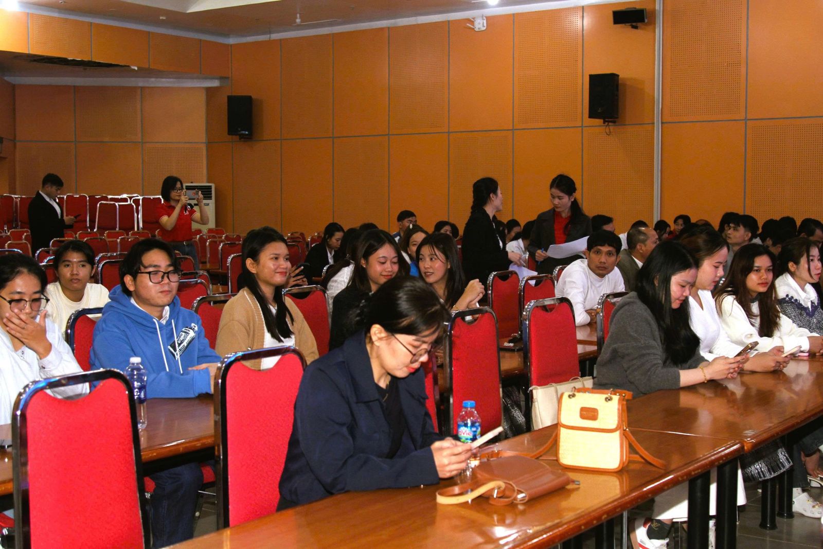 Đại diện Công ty Star Telecom giới thiệu thông tin tuyển dụng cho sinh viên Lào.
