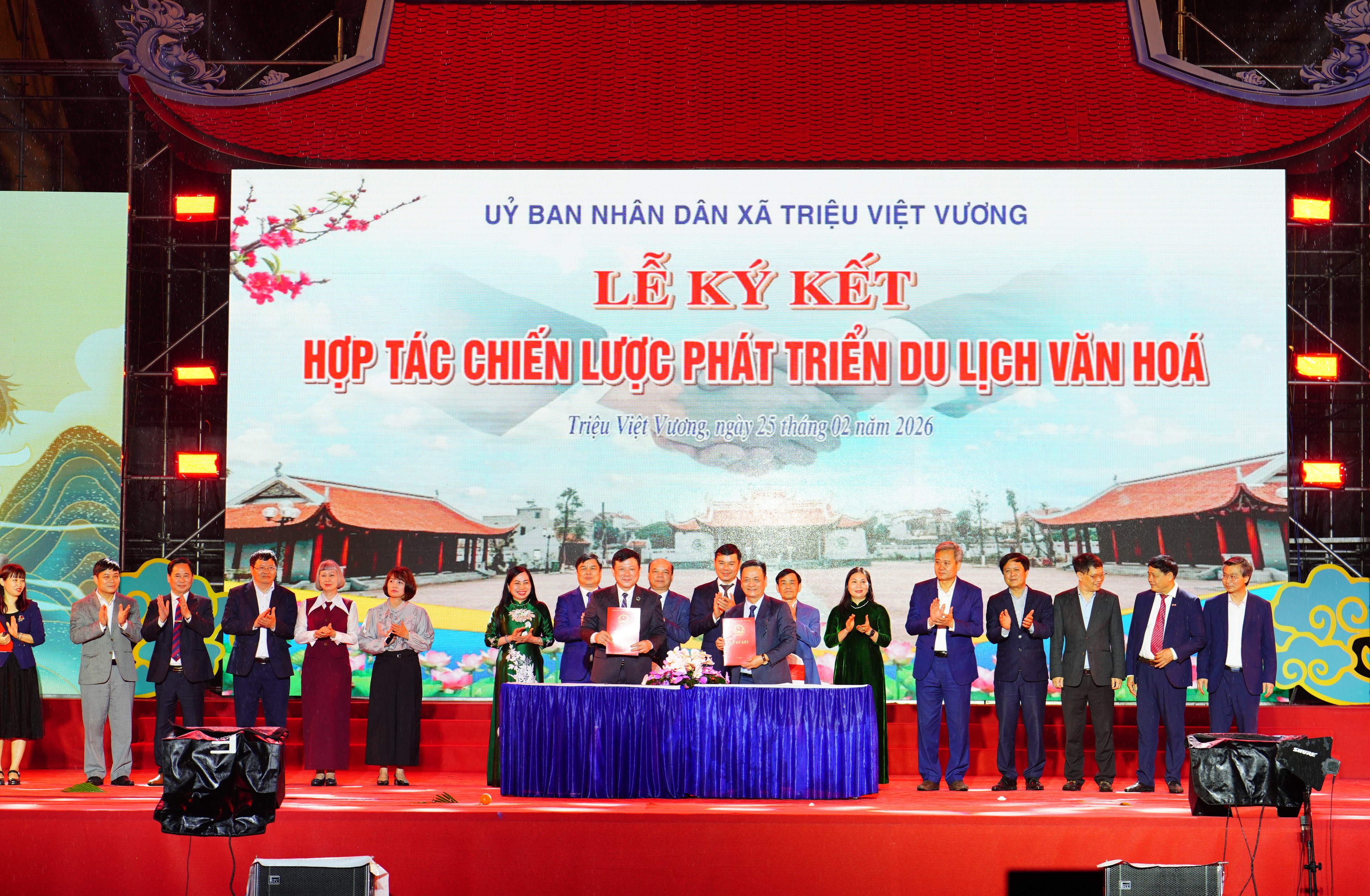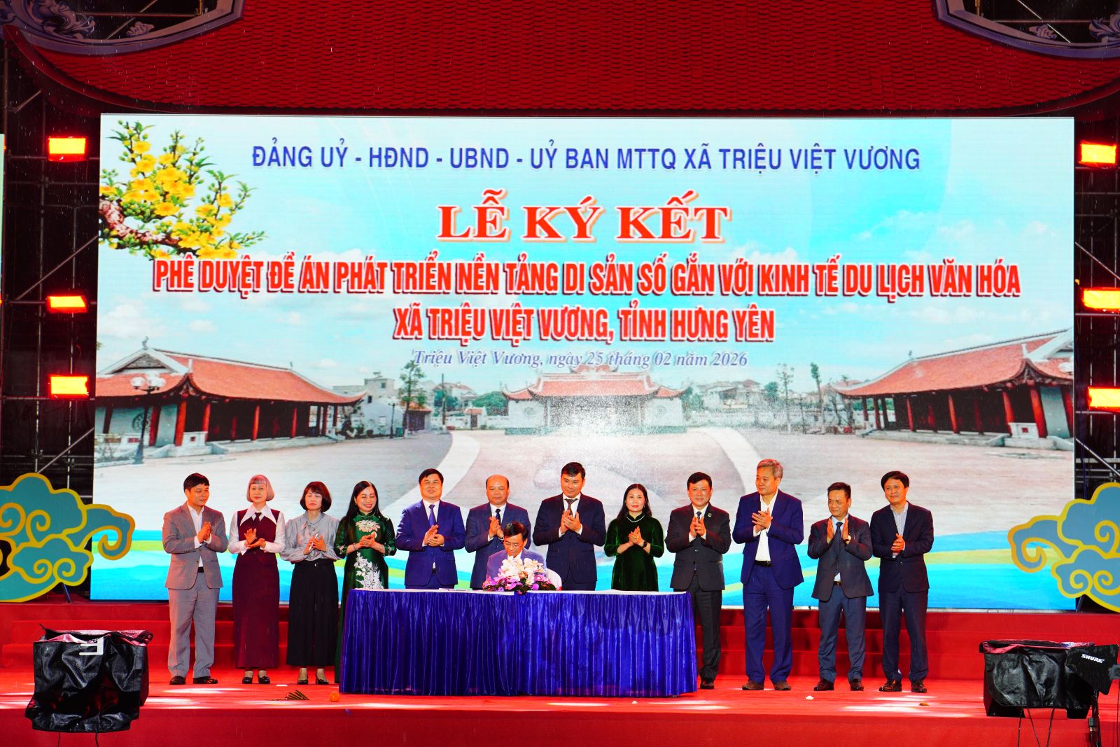 Nhân dịp này, UBND xã Triệu Việt Vương đã ký kết hợp tác chiến lược phát triển du lịch văn hóa với một số cơ sở giáo dục đại học gồm: Đại học Thái Nguyên, Đại học Kinh tế Quốc dân, Trường Đại học Hòa Bình, Trường Đại học Thái Bình, Trường Đại học Công đoàn, Học viện Nông nghiệp Việt Nam. Đồng thời, xã Triệu Việt Vương đã ký kết phê duyệt Đề án phát triển nền tảng di sản số gắn với kinh tế du lịch văn hoá với Đại học Thái Nguyên.