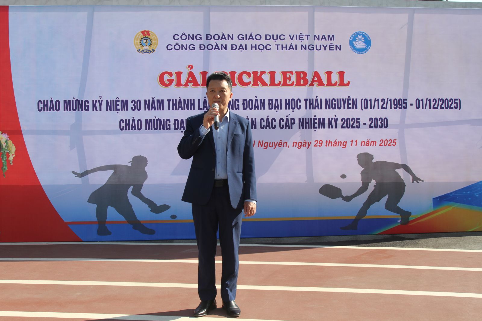 Nhân dịp Kỷ niệm 30 năm thành lập Công đoàn Đại học Thái Nguyên (01/12/1995-01/12/2025) và chào mừng Đại hội Công đoàn các cấp nhiệm kỳ 2025-2030, ngày 29/11, Công đoàn Đại học Thái Nguyên tổ chức “Giải thể thao Pickleball Công đoàn Đại học Thái Nguyên năm 2025” tại Sân Pickleball, Trường Đại học Kinh tế và Quản trị Kinh doanh.