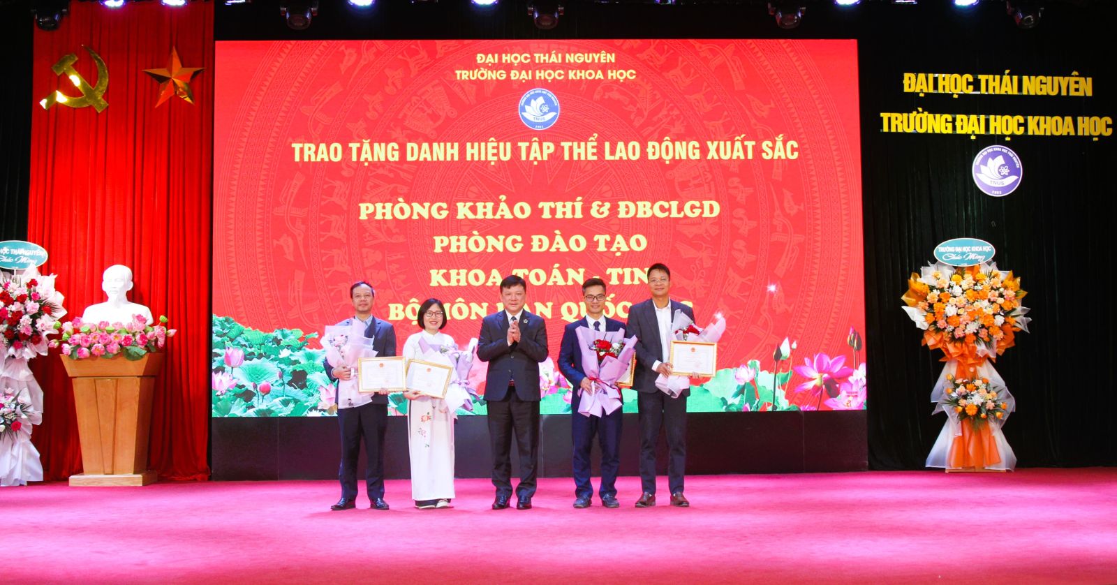 Trong khuôn khổ chương trình, thừa ủy quyền, PGS.TS. Hoàng Văn Hùng, Phó Bí thư Đảng ủy, Giám đốc Đại học Thái Nguyên đã trao tặng Bằng khen của Bộ Giáo dục và Đào tạo đối với tập thể Trường Đại học Khoa học đã có thành tích xuất sắc trong phong trào thi đua “Đổi mới sáng tạo trong quản lý, giảng dạy và học tập” năm 2024; Bằng khen của Bộ Giáo dục và Đào tạo đối với 2 tập thể và 02 cá nhân đạt thành tích xuất sắc năm 2023 và 2024; 04 tập thể đạt danh hiệu Tập thể Lao động xuất sắc, 02 cá nhân đạt danh hiệu Chiến sĩ thi đua cấp Bộ; Bằng khen của Bộ Giáo dục và Đào tạo đối với tập thể Trường Đại học Khoa học và 01 cá nhân đã có thành tích xuất sắc trong công tác phòng, chống bão lũ năm 2024; Bằng khen của Bộ Giáo dục và Đào tạo đối với tập thể Trường Đại học Khoa học và 01 cá nhân đã có thành tích xuất sắc tại Đại hội Thể thao Sinh viên Đông Nam Á lần thứ 21 năm 2024; Bằng khen của Bộ Giáo dục và Đào tạo đối với 01 cá nhân đã có nhiều đóng góp cho sự nghiệp giáo dục và đào tạo.