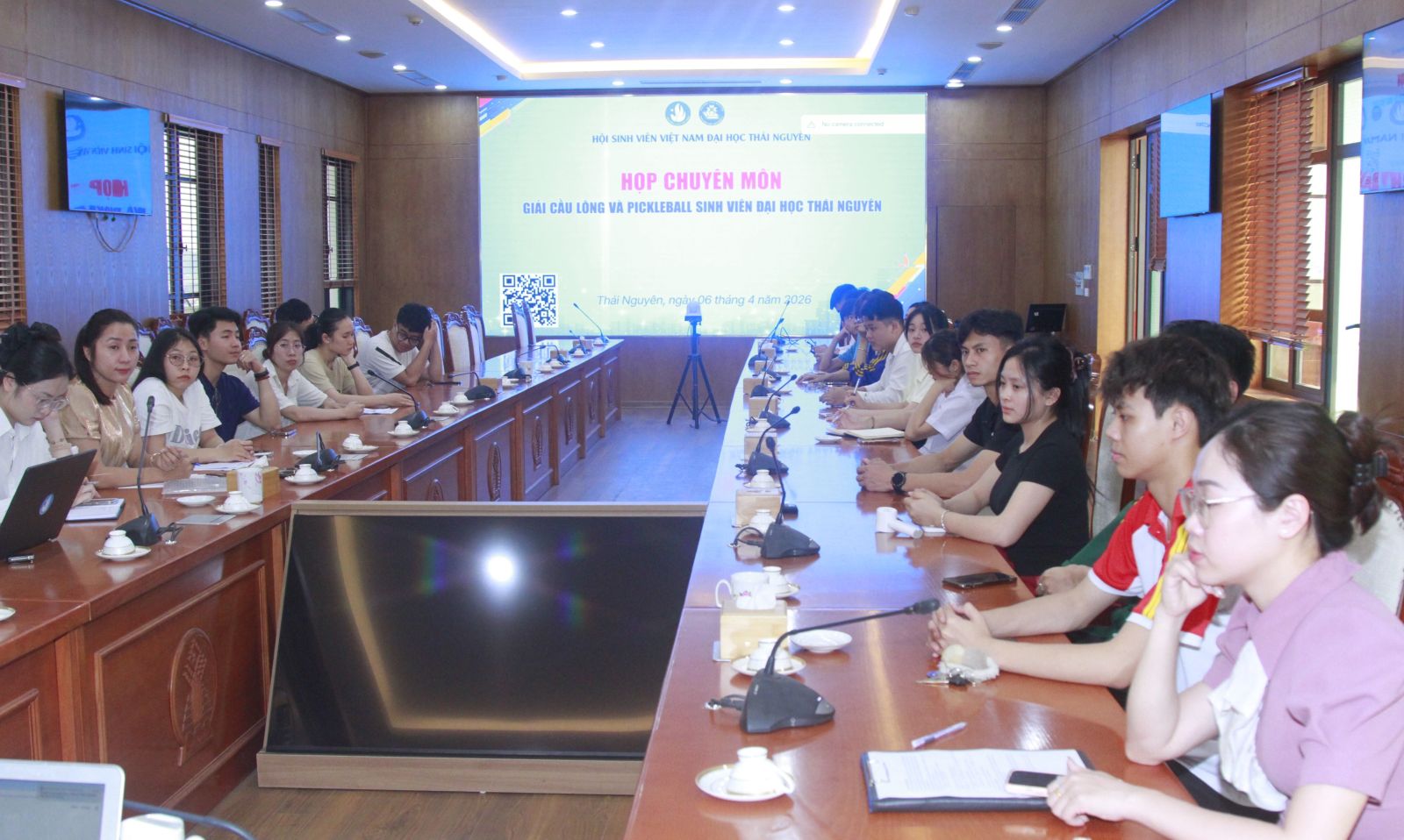 Chiều 6/4, Hội Sinh viên Đại học Thái Nguyên tổ chức họp chuyên môn Giải Cầu lông và Pickleball sinh viên Đại học Thái Nguyên năm 2026. Tham dự họp có Ban Thư ký Hội Sinh viên Đại học Thái Nguyên; đại diện Hội Sinh viên các đơn vị và các vận động viên tham gia giải.