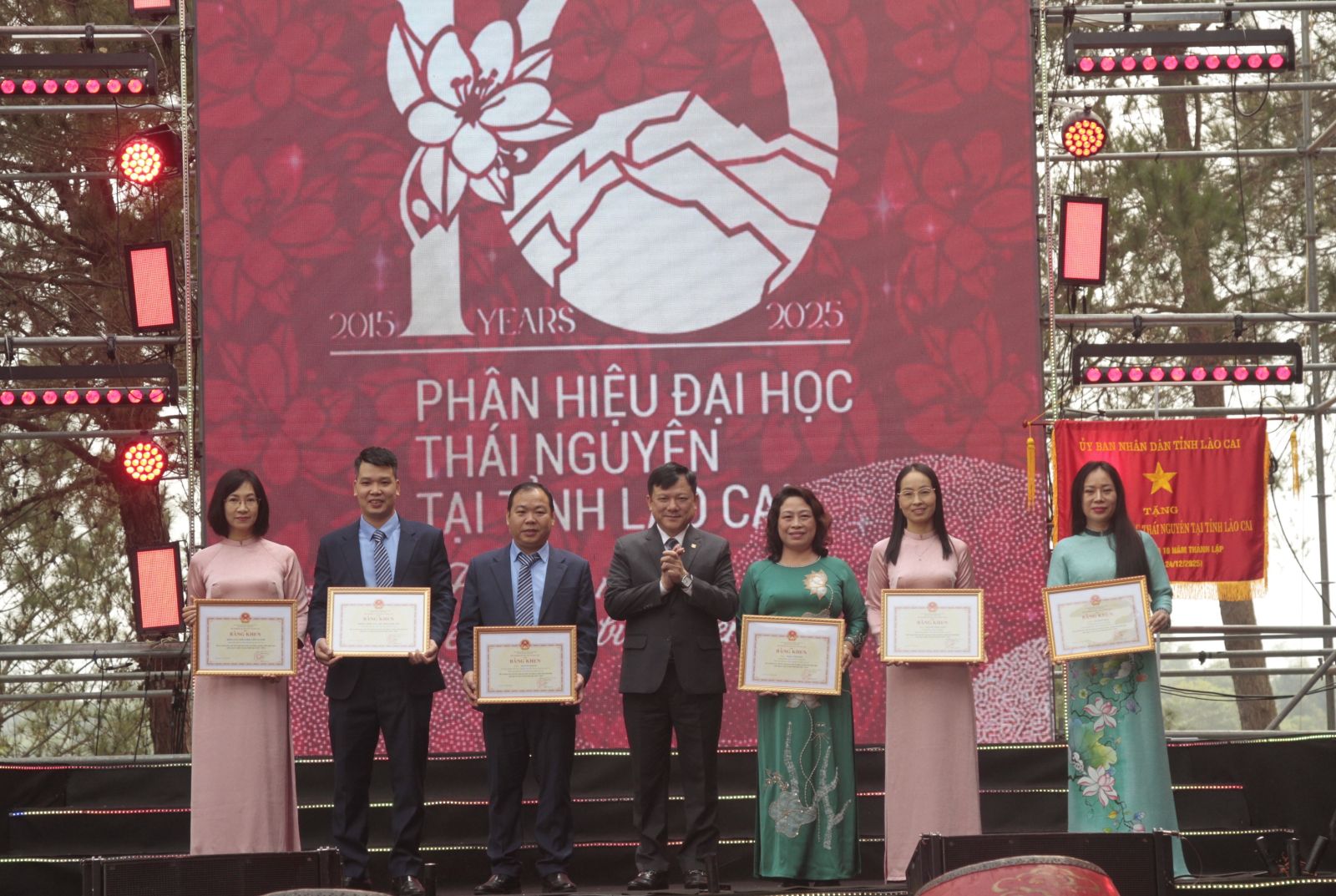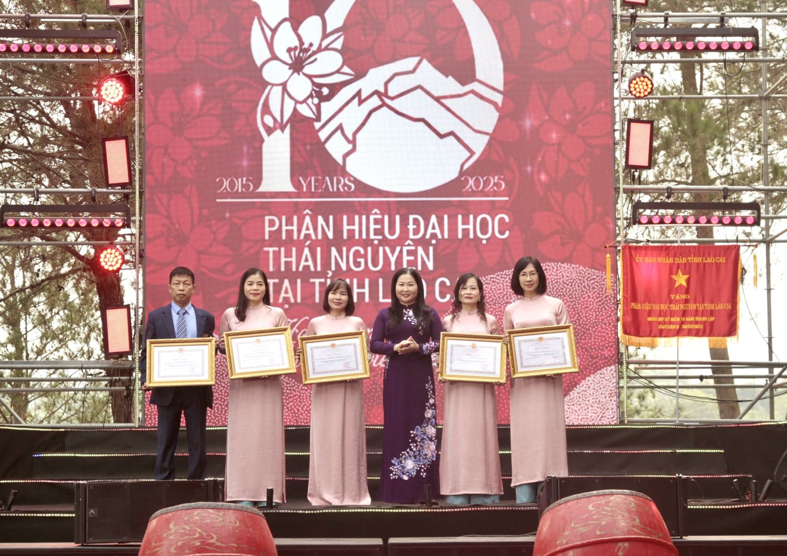 Nhân dịp này, đồng chí Vũ Thị Hiền Hạnh, Ủy viên Ban Chấp hành Đảng bộ tỉnh, Phó Chủ tịch UBND tỉnh Lào Cai đã trao tặng bức trướng của Chủ tịch UBND tỉnh Lào Cai cho Phân hiệu Đại học Thái Nguyên tại tỉnh Lào Cai; tặng Bằng khen của Chủ tịch UBND tỉnh Lào Cai cho 04 tập thể, 05 cá nhân đã có nhiều thành tích đóng góp vào sự phát triển của Phân hiệu; tặng Bằng khen của Bộ Giáo dục và Đào tạo cho 02 tập thể, 04 cá nhân đã có thành tích xuất sắc trong quá trình xây dựng và phát triển Phân hiệu. Đây là nguồn động viên to lớn, tiếp thêm niềm tin và động lực để Phân hiệu tiếp tục phát triển vững chắc trong chặng đường phía trước.