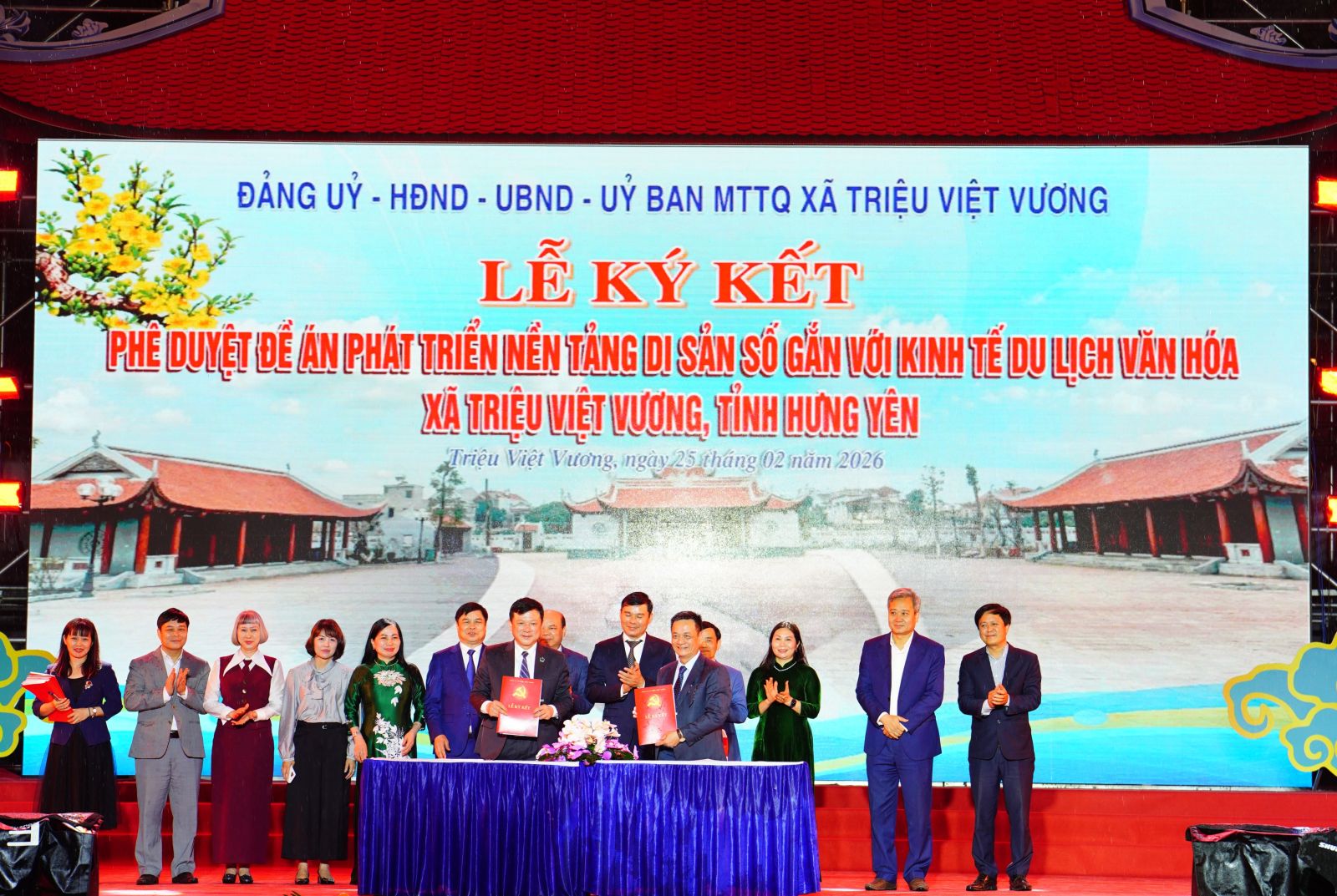 Hai bên đặt mục tiêu xây dựng xã trở thành mô hình du lịch văn hóa “Kiến tạo di sản số” tiêu biểu khu vực đồng bằng sông Hồng giai đoạn 2026-2030. Hoạt động hợp tác gắn đào tạo, nghiên cứu, chuyển giao công nghệ với phát triển kinh tế - xã hội địa phương, trọng tâm là du lịch văn hóa và chuyển đổi số. Các nội dung triển khai gồm khảo sát, xây dựng bản đồ tài nguyên văn hóa, thiết kế 1-2 sản phẩm du lịch chủ lực và phát triển mô hình du lịch thông minh. Hai bên phối hợp đào tạo kỹ năng du lịch, marketing số, quản trị trải nghiệm; tư vấn lộ trình chuyển đổi số và xây dựng hệ sinh thái sáng tạo địa phương. Tổ công tác chung sẽ được thành lập để xây dựng kế hoạch hằng năm, bảo đảm lộ trình, nguồn lực và hiệu quả hợp tác bền vững./.