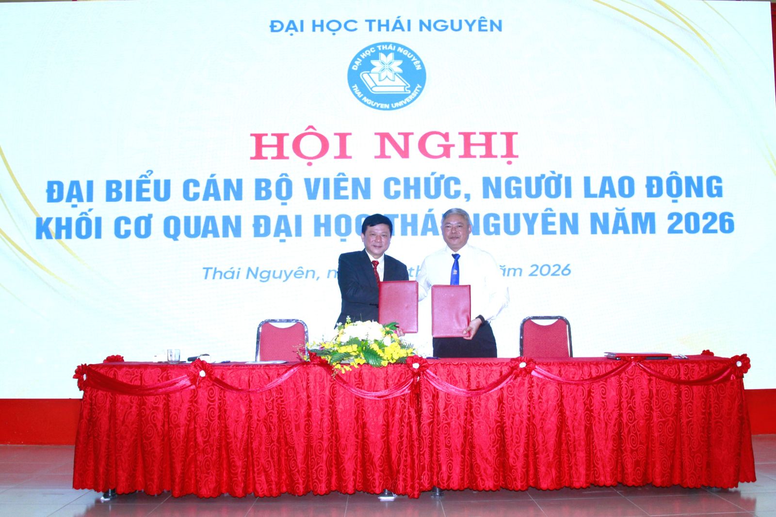 Đại diện lãnh đạo Khối Cơ quan ĐHTN và Công đoàn Khối Cơ quan ĐHTN ký kết giao ước thi đua năm 2026.