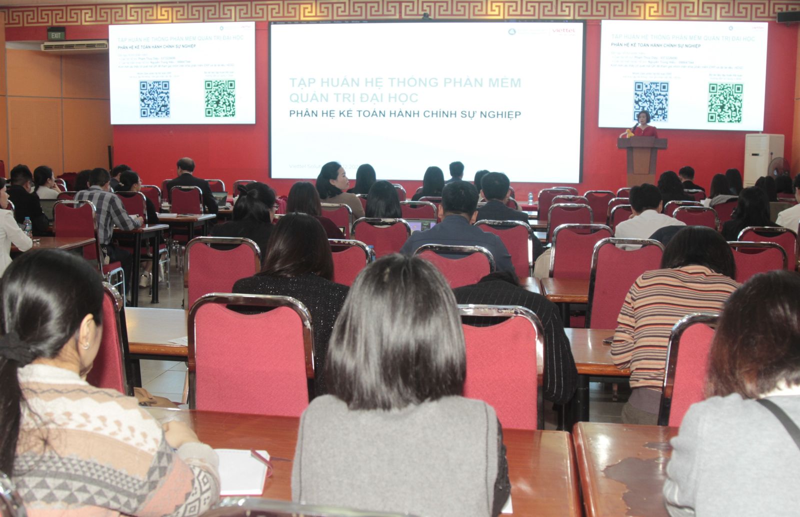 Phát biểu tại buổi tập huấn,  TS. Nguyễn Hồng Liên, Phó Giám đốc Đại học Thái Nguyên nhấn mạnh: Đại học Thái Nguyên đang chuyển đổi mạnh mẽ để trở thành Đại học số - Đại học xanh - Trung tâm đổi mới sáng tạo. Đại học triển khai chuyển đổi số toàn diện trong đào tạo, quản trị, nghiên cứu và dịch vụ cho người học. Đại học Thái Nguyên đã phối hợp cùng Tập đoàn Công nghiệp - Viễn thông Quân đội Viettel triển khai đồng bộ 03 dự án công nghệ thông tin và chuyển đổi số trọng điểm bao gồm: Dự án Hạng mục công nghệ thông tin Bước 3; Dự án Phần mềm Quản lý Đào tạo giai đoạn 1; Dự án Phần mềm Quản trị Đại học ERP. Trong đó, triển khai các phần mềm nội bộ gồm: Quản lý văn bản, Quản lý nhân sự, Xác thực tập trung, Sinh viên số, Quản lý Tài chính - kế toán, Quản lý tài sản, Kho dữ liệu, Trục tích hợp và Phần mềm quản lý đào tạo giai đoạn 1. Buổi tập huấn nhằm triển khai cụ thể hệ thống phần mềm quản trị đại học đến các trường đại học, cao đẳng thành viên.