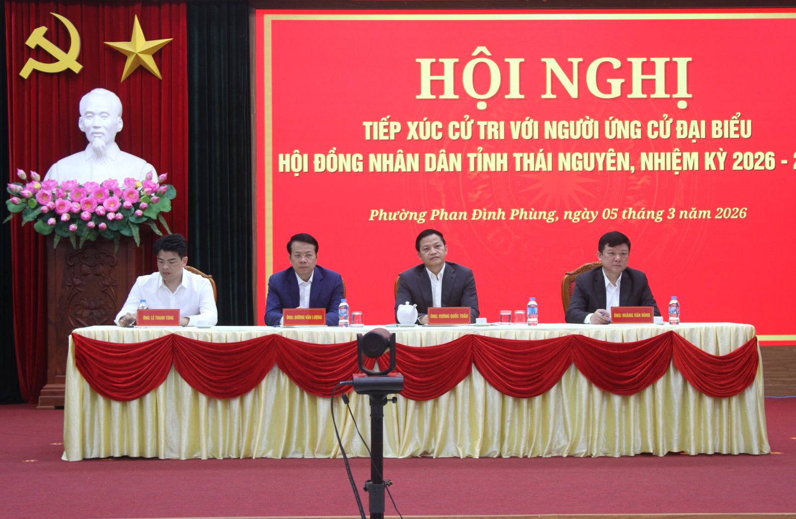 Các ứng cử viên đại biểu HĐND tỉnh Thái Nguyên nhiệm kỳ 2026-2031 tại đơn vị bầu cử số 1 gồm: Ông Vương Quốc Tuấn, Ủy viên Ban Chấp hành Trung ương Đảng, Phó Bí thư Tỉnh ủy, Chủ tịch UBND tỉnh Thái Nguyên; Ông Dương Văn Lượng, Ủy viên Ban Chấp hành Đảng bộ tỉnh, Phó Chủ tịch UBND tỉnh, Bí thư Đảng ủy phường Phan Đình Phùng; Ông Hoàng Văn Hùng, Phó Bí thư Đảng ủy, Giám đốc Đại học Thái Nguyên; Ông Lê Thanh Tùng, Viên chức Trung tâm dịch vụ tổng hợp phường Phan Đình Phùng; Bà Đỗ Thị Yến, Viên chức Trường THCS Tân Thịnh, Phường Phan Đình Phùng.