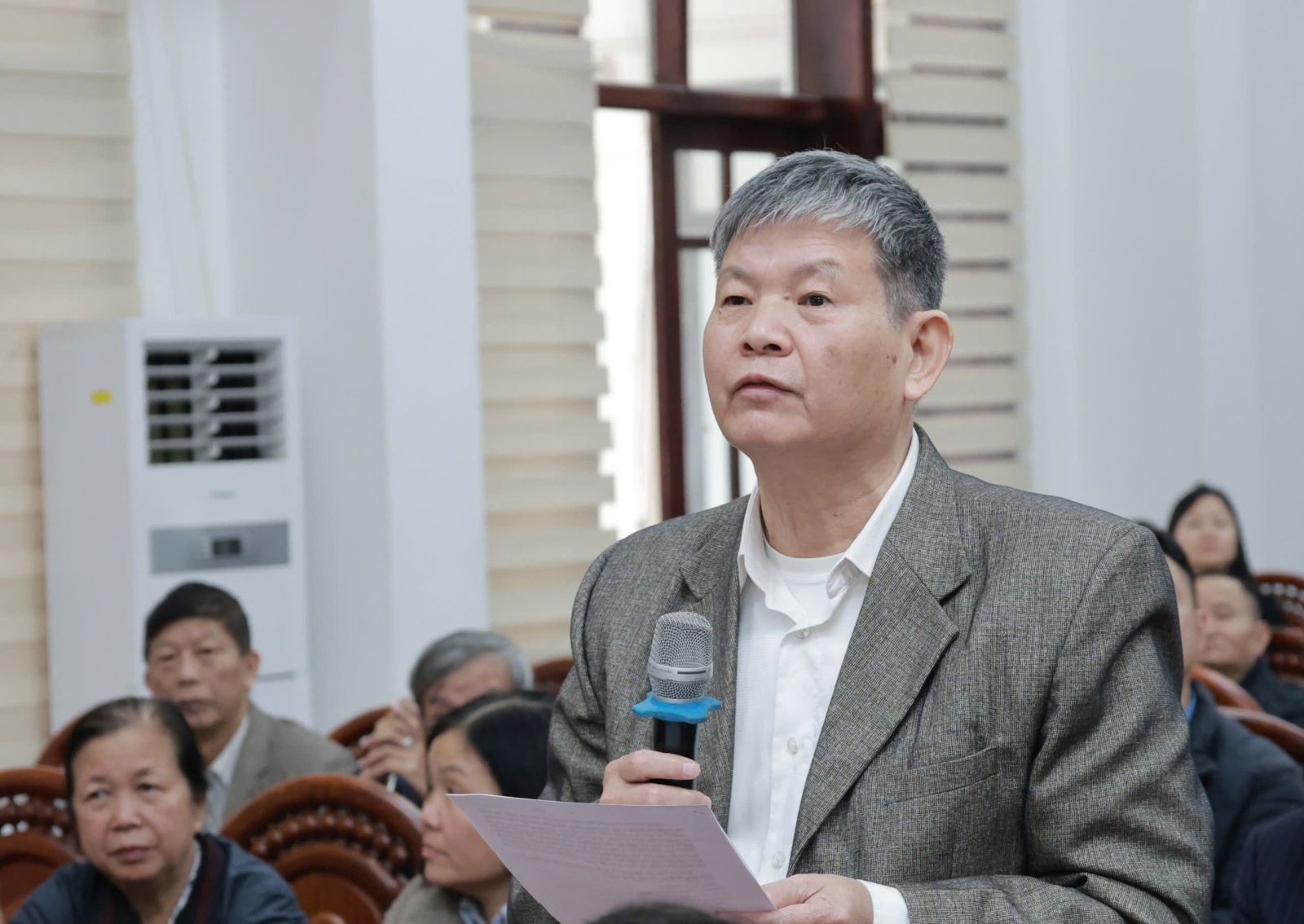Cử tri phát biểu ý kiến tại hội nghị.