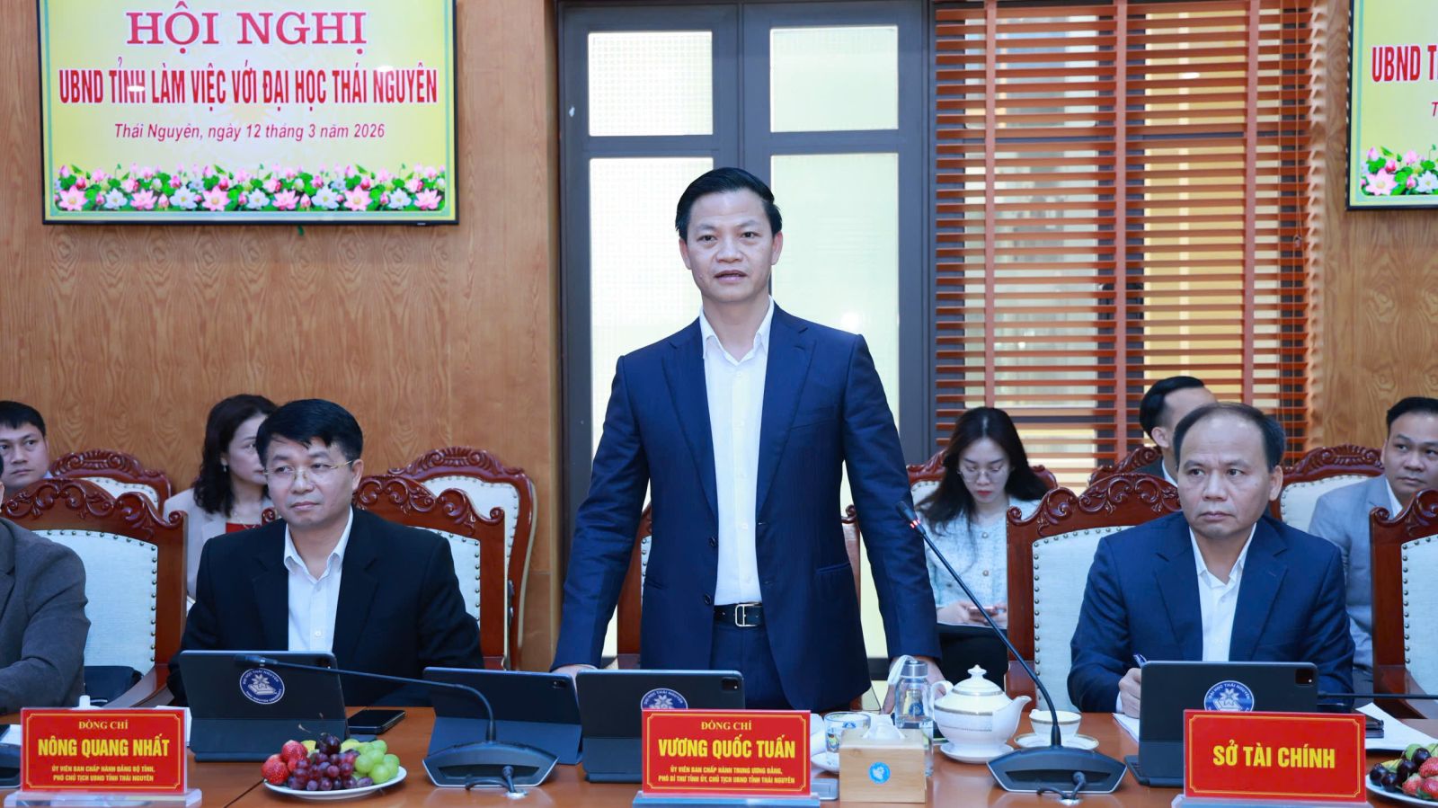 Phát biểu tại buổi làm việc, Chủ tịch UBND tỉnh Vương Quốc Tuấn nhấn mạnh: ĐHTN là lợi thế cạnh tranh quan trọng của tỉnh trong phát triển nguồn nhân lực chất lượng cao, khoa học công nghệ và đổi mới sáng tạo. Tỉnh sẽ quan tâm tạo điều kiện về quy hoạch, không gian phát triển và hạ tầng để ĐHTN mở rộng, phát huy vai trò trung tâm đào tạo và nghiên cứu khoa học, chuyển giao công nghệ của vùng Trung du, miền núi phía Bắc.