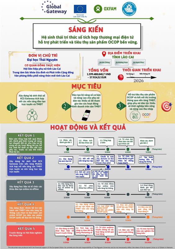 Dự án “Hệ sinh thái tri thức số tích hợp thương mại điện tử hỗ trợ phát triển và tiêu thụ sản phẩm OCOP bền vững” do ĐHTN chủ trì, với sự tài trợ từ Chương trình hỗ trợ các sáng kiến chuyển đổi xanh do phụ nữ dẫn dắt (PWG).