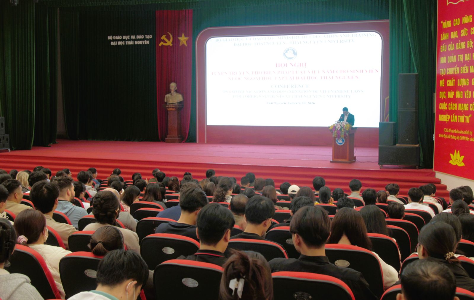 Phát biểu khai mạc hội nghị, GS.TS. Nguyễn Danh Nam, Trưởng Ban Đào tạo và Quản lý người học, Đại học Thái Nguyên nhấn mạnh, pháp luật Việt Nam luôn tạo điều kiện thuận lợi, bảo vệ quyền và lợi ích hợp pháp của người nước ngoài đang học tập, làm việc và sinh sống tại Việt Nam. Tuy nhiên, đi đôi với quyền lợi là trách nhiệm tuân thủ pháp luật, từ các quy định về xuất nhập cảnh, cư trú, học tập, lao động, giao thông, an ninh trật tự đến việc tôn trọng các chuẩn mực văn hóa, đạo đức xã hội của Việt Nam. Hiện nay, Đại học Thái Nguyên đang đào tạo khoảng 1.000 sinh viên nước ngoài đến từ 26 nước và vùng lãnh thổ. Thông qua hội nghị, mong muốn các em lưu học sinh chủ động tìm hiểu pháp luật Việt Nam; thực hiện nghiêm túc các quy định của pháp luật và nội quy của Đại học Thái Nguyên cũng như của nhà trường; trở thành những “đại sứ văn hóa”, góp phần lan tỏa hình ảnh đẹp của sinh viên quốc tế văn minh, thân thiện và tôn trọng pháp luật.