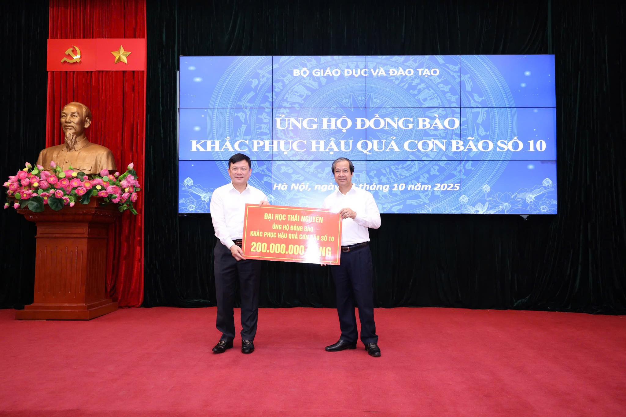 Tại hội nghị, các đồng chí lãnh đạo ĐHTN cùng cán bộ, viên chức, giảng viên, sinh viên ĐHTN đã ủng hộ 200 triệu đồng nhằm góp phần chia sẻ khó khăn, giúp người dân bị thiệt hại do bão lũ sớm ổn định cuộc sống.
