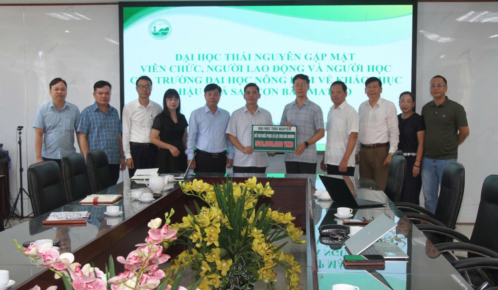 Lãnh đạo Đại học Thái Nguyên thăm, trao quà hỗ trợ Trường Đại học Nông Lâm bị ảnh hưởng bởi bão số 11